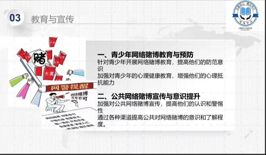 本次每周学法活动通过线上线下相结合的方式,宣传网络赌博的危害,筑牢校园安全防线,希望同学们从自身做起,远离网络赌博,争做文明健康、奋发有为的新时代大学生。