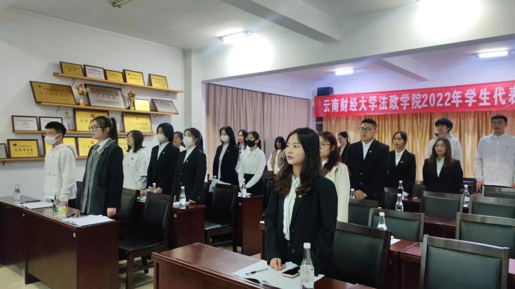 大会第九项,奏唱《团歌》。完成大会各项议程后,法政学院2022年学生代表大会圆满结束。