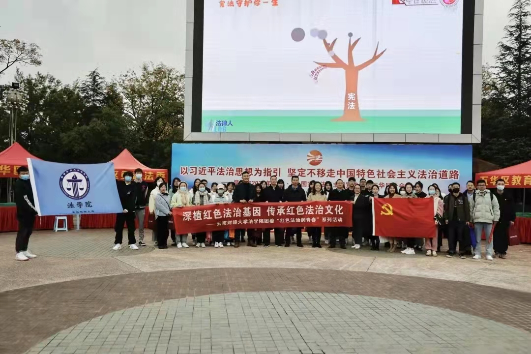 为迎接我国第八个宪法日,进一步学习宣传习近平法治思想,大力弘扬宪法精神,增强社会的宪法意识,云财法学院团委于12月4日在月牙塘社区开展了“红色法治润青春”系列活动之“12·4”宪法日主题活动。