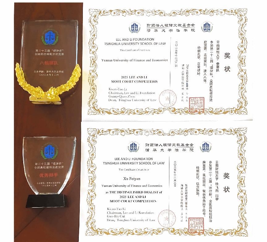 近年来,法政学院围绕法学国家一流专业建设,大力推进教学质量提升工程,在夯实学生法学理论基础的同时,不断强化优化实习实践教学,将真实案例引入课堂,在全国首创以真实案件为基础的个案全程仿真诉讼沉浸式实践教学新模式,多次组队参加全国性模拟法庭竞赛并取得优异成绩。此次在“理律杯”全国高校模拟法庭竞赛中取得优异成绩,是对法政学院实践教学创新模式的再次检验和实践教学改革成效的再次证明,展现了云财学子奋进向上、勇于挑战的风采,为学校和学院赢得了荣誉。