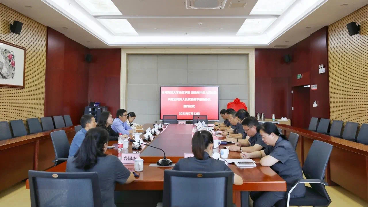 仪式上,双方签订了共建协同育人及实践教学基地协议,为“协同育人及实践教学基地”揭牌,对下步基地建设运行进行沟通探讨。共建协议在基地建设运行、双向交流机制、资源共享机制、联合研究机制、共建实践教学基地等方面达成一致,WilliamHill官方网站法政学院与楚雄中院将双向交流培养法官助理和实践课教师,共享法学理论资源和法律实务资源,共同研究法律理论和实务问题,通过理论研究与司法实践的深度融合共同推进法治人才建设。