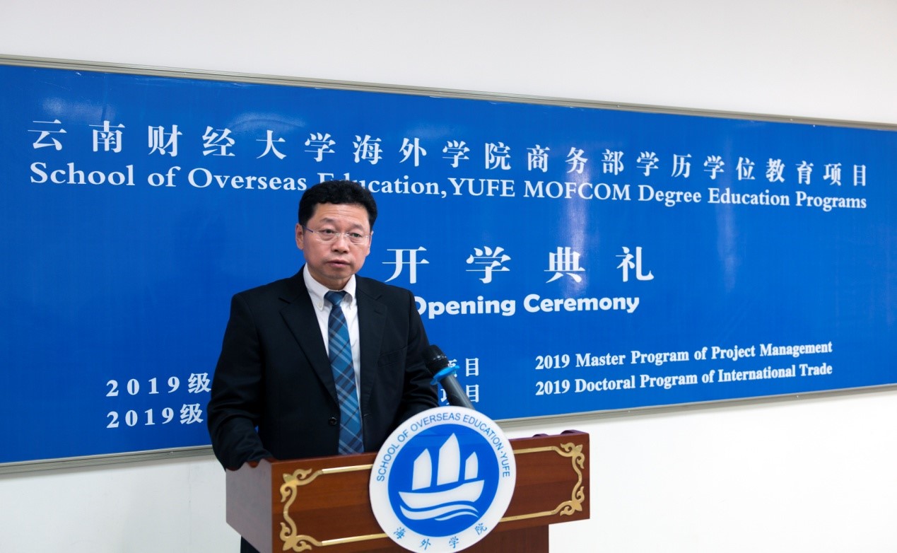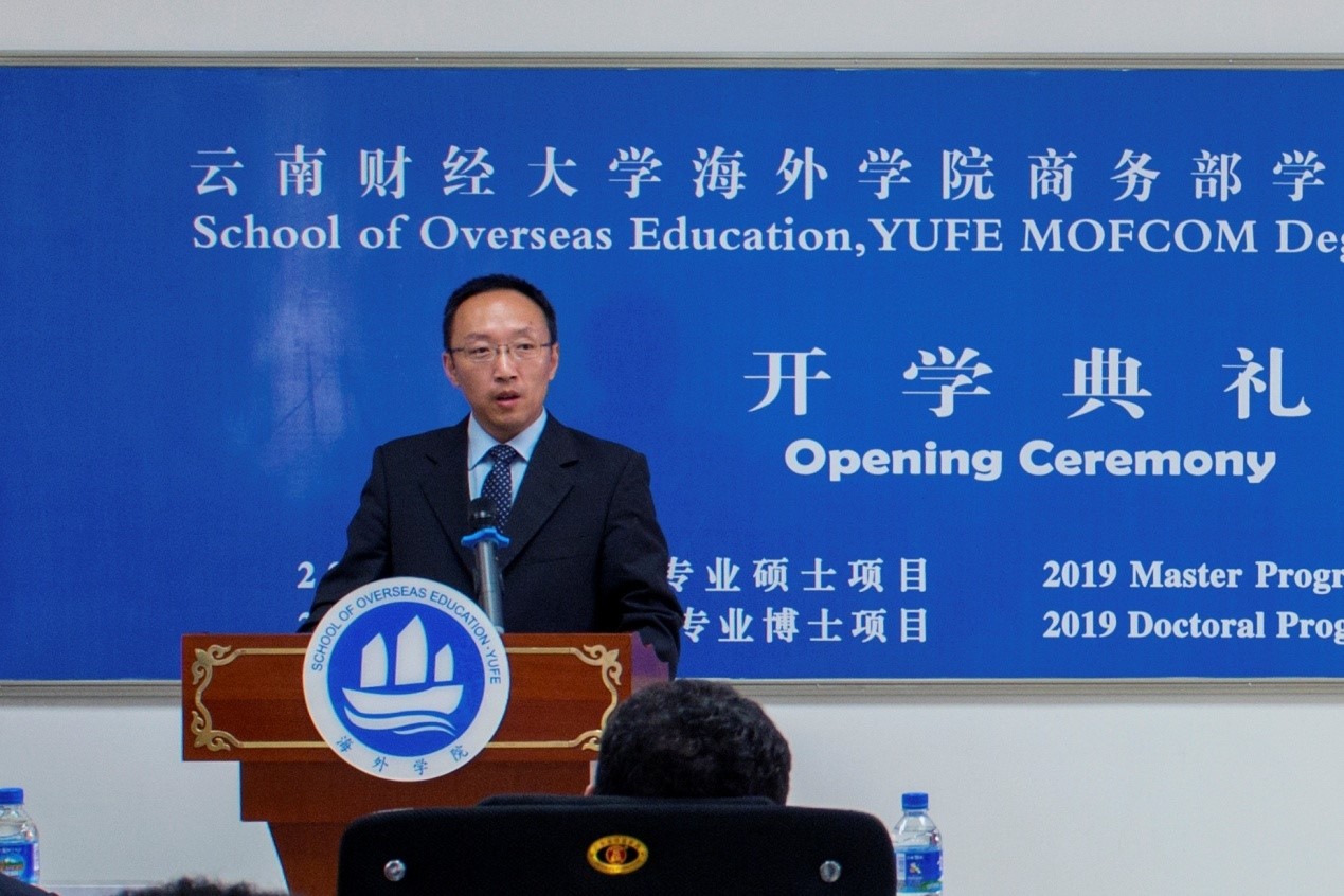 之后,2019级埃塞俄比亚博士学员代表ABOYE TILAHUN ABERA代表2019级全体新生致辞。他表示,取得攻读博士学位的机会不容易,非常具有挑战性,但所付出的一切努力都是值得的。读博士的原因不是简单的把自己的称谓从先生变为博士,而是为了推动研究,成为相关领域的专家。感谢这个项目为所有学员提供一个交流学习的机会,使大家能够分享彼此的文化,使这个世界成为一个地球村。通过在云南财大学习,大家不仅能够建立深厚的友谊,还能为各自国家建立和保持双边贸易和商业关系。