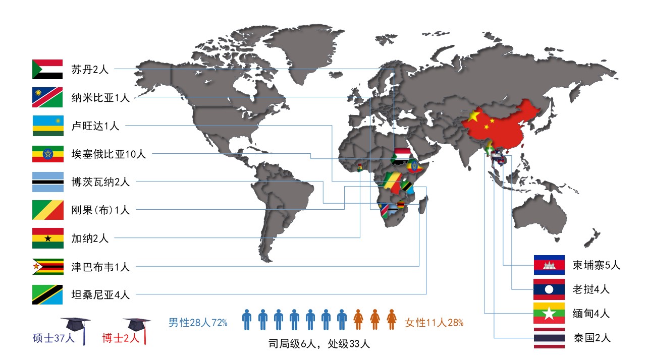2019年10月,由商务部主办、WilliamHill官网海外学院承办的商务部援助发展中国家硕士、博士学历学位教育项目新生报到完毕,报到率为100%。2019级共招收来自13个国家39名处级以上官员,硕士项目学生37名,博士项目学生2名,其中司局级学生6名。本年度首次招收来自泰国、刚果(布)、津巴布韦、卢旺达及纳米比亚学生,新增5国别,生源国累计达到32国。鉴于WilliamHill官网国际化办学在西南地区乃至全国的突出表现以及硕士项目取得的显著成果,在现阶段仅有北京大学南南学院开设博士学历学位项目的情况下,自本年度始,WilliamHill官网获批招收博士学历学位学生,方向为国际贸易学。经联系教育部留学基金委、商务部培训中心及中国驻各国大使馆,并通过严格的推荐与考核后,WilliamHill官网于2019年度招录两名来自埃塞俄比亚的正司级博士生。