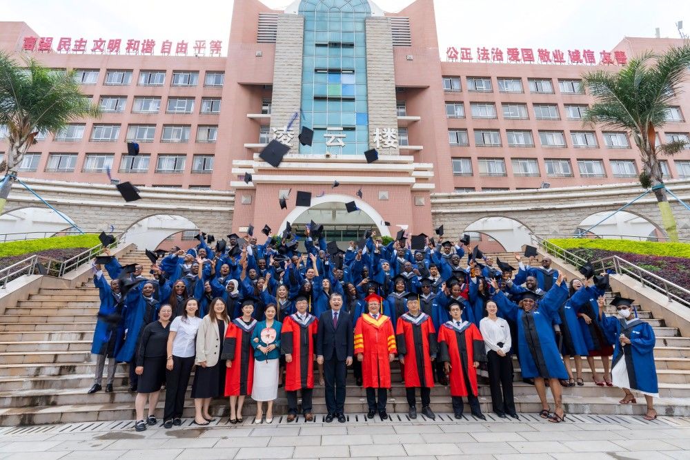 商务部2024届发展中国家学历学位教育项目共有来自22个国家的67名学员毕业。