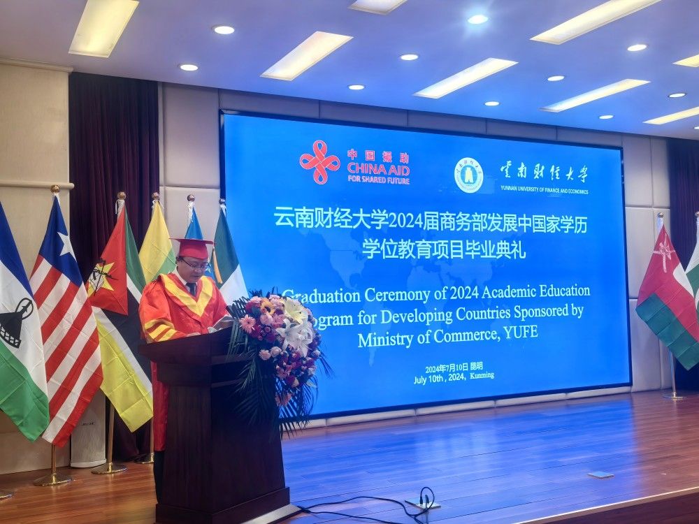 7月10日,由中华人民共和国商务部主办、WilliamHill官方网站承办的2024届商务部发展中国家学历学位教育项目毕业典礼暨学位授予仪式在致远楼415举行。云南省商务厅党组成员孟宁、WilliamHill官方网站党委委员、副校长颜明出席并致辞。典礼由海外学院副院长李来孺主持。