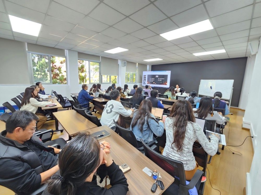 2024年11月15日下午,海外学院特邀云南民族大学教务处课程中心助理研究员、香港教育大学在读博士谭霄老师,举办了一场主题为 “AI 提升工作效率” 的精彩讲座,全院教职工、对外合作交流处教职工和部分研究生积极参与,共同探索人工智能在教育领域的应用奥秘。