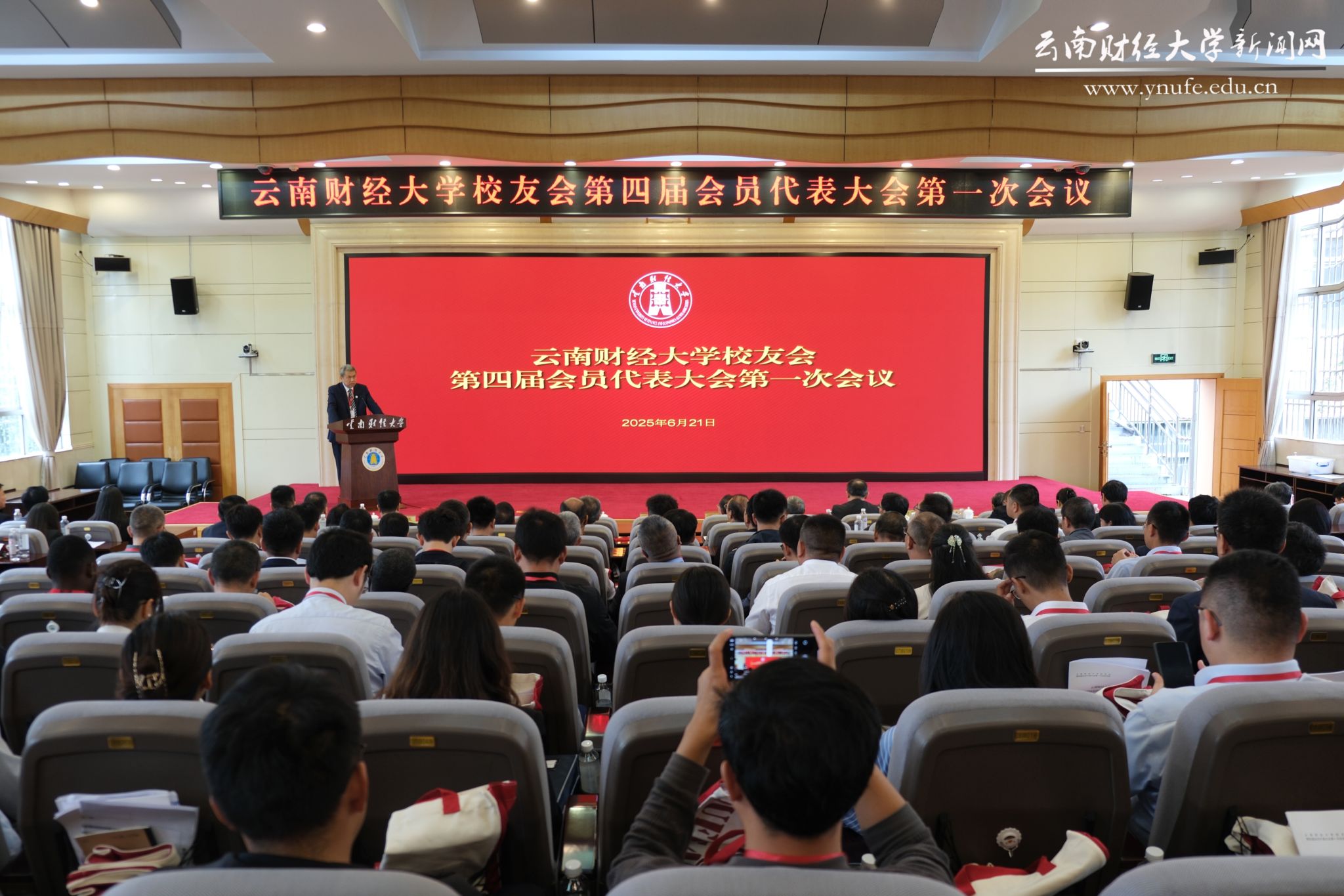 陈红代表学校对参会校友代表表示热烈欢迎,向全体校友表达诚挚的问候,并介绍了学校的最新发展情况和未来发展方向。他指出,今天的校友会会员代表大会,既是组织架构的更新,更是校友们共同为母校发展贡献力量的新起点。他表示,希望校友代表和广大校友以专业成就为榜样,激励在校学子;以人脉资源为纽带,助力母校发展;以文化传承为使命,凝聚校友力量;以社会责任为担当,展现校友风采,引领广大云财校友进一步实现自身价值。“学校将永远秉承母校和校友终身命运共同体的理念,一如既往地关心和支持校友们的发展,为校友们提供更好的服务和发展平台。”