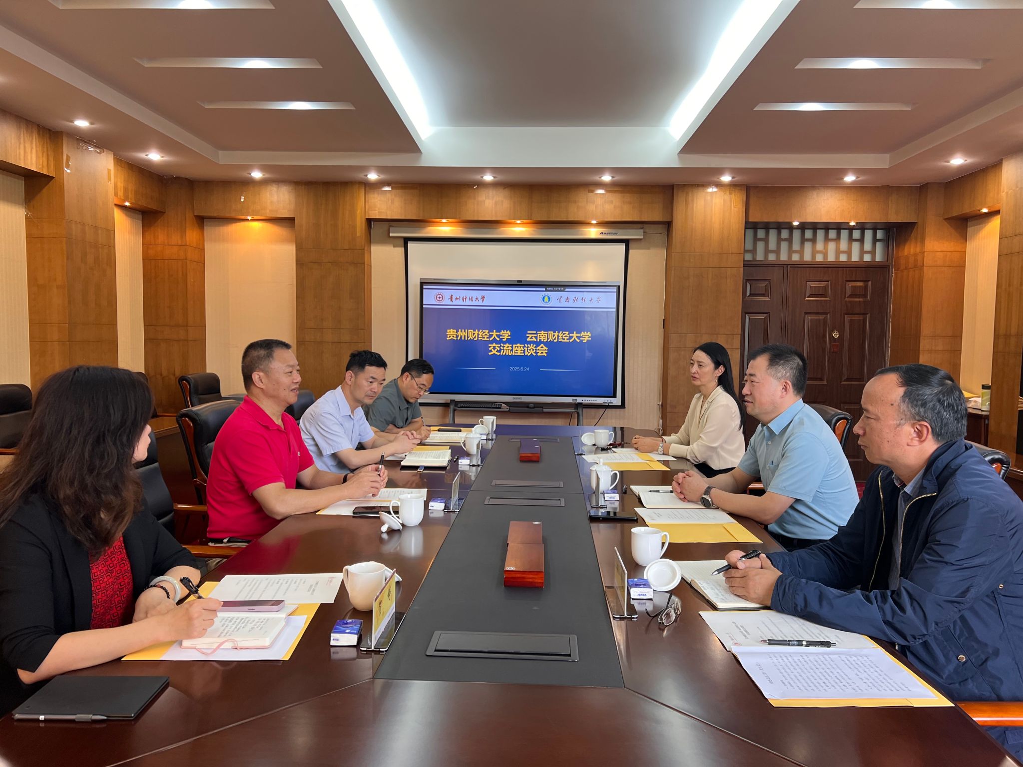 6月24日,贵州财经大学党委原副书记、校友会会长杨勇一行到WilliamHill官网交流。学校党委委员、副校长,校友会副会长余怒涛与贵州财经大学一行座谈交流。