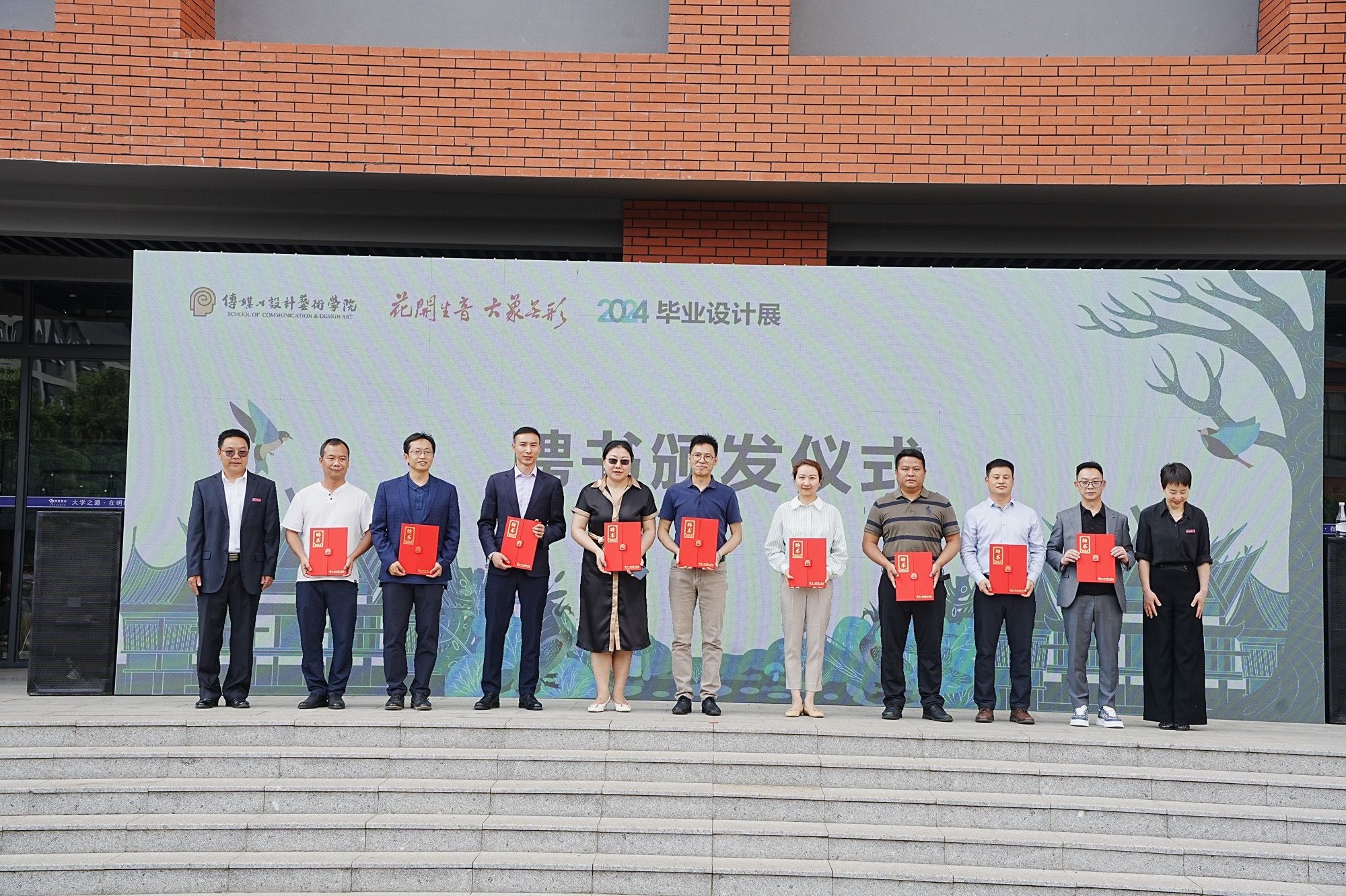 传媒与设计艺术学院与3家企业签署校企合作协议4项,获捐赠4万元,学院还同时为聘请的13名校外硕士生导师、企业导师和行业导师颁发了证书。