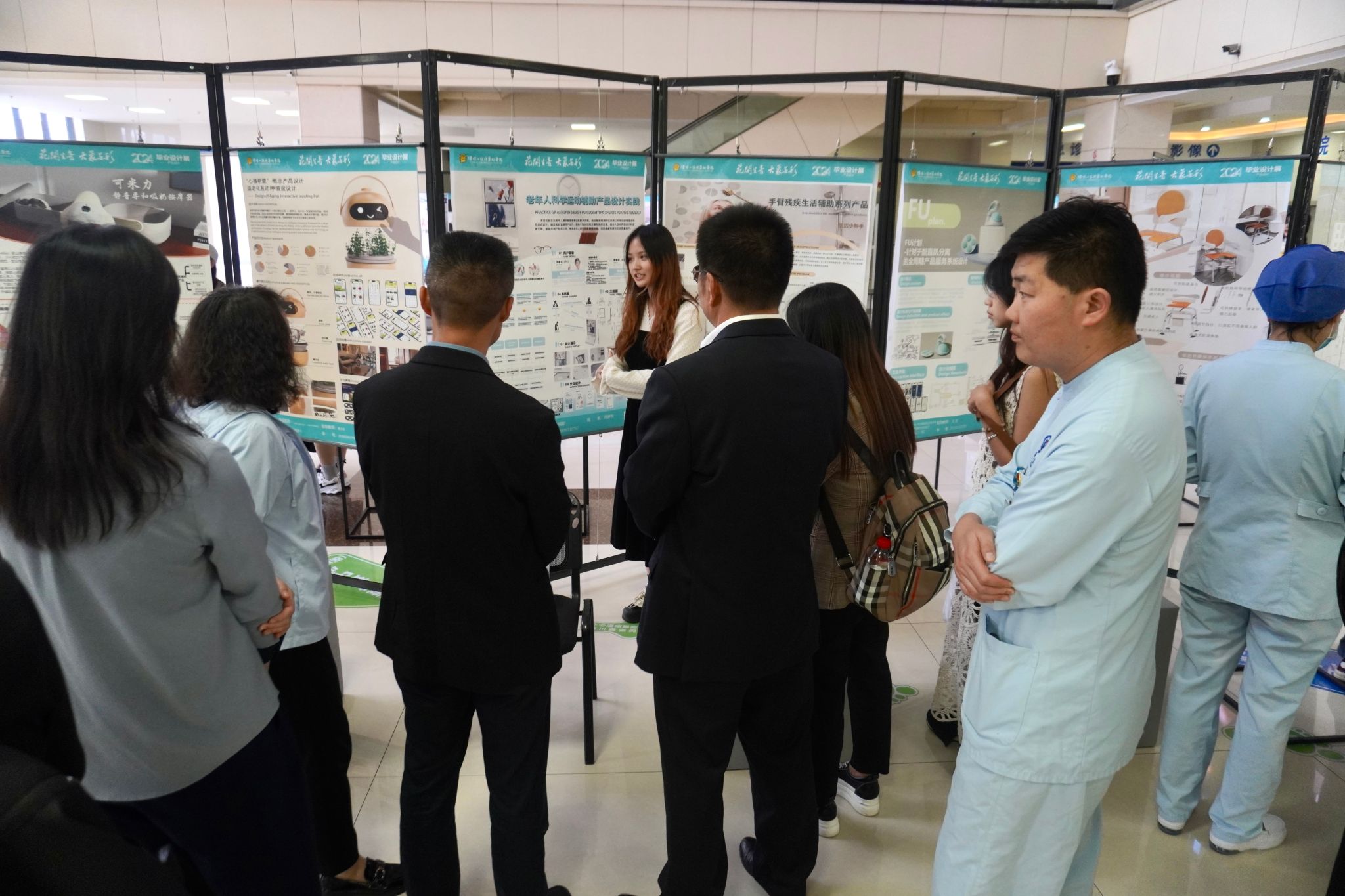 在作品展参观环节,学校领导一行来到齐远楼毕业设计作品展区域,与师生一起就作品设计理念、作品最终呈现等进行交流互动。王建颖对学生作品表示了充分肯定,认为毕业设计展办得有规模、有质量、有影响。她指出,作品符合年轻人的审美及爱好,极具时代特色。同时,她希望传媒与设计艺术学院继续推进校企合作、产教融合模式,继续秉承“产学研用一体化”的发展理念,培养更多符合社会需求的人才。