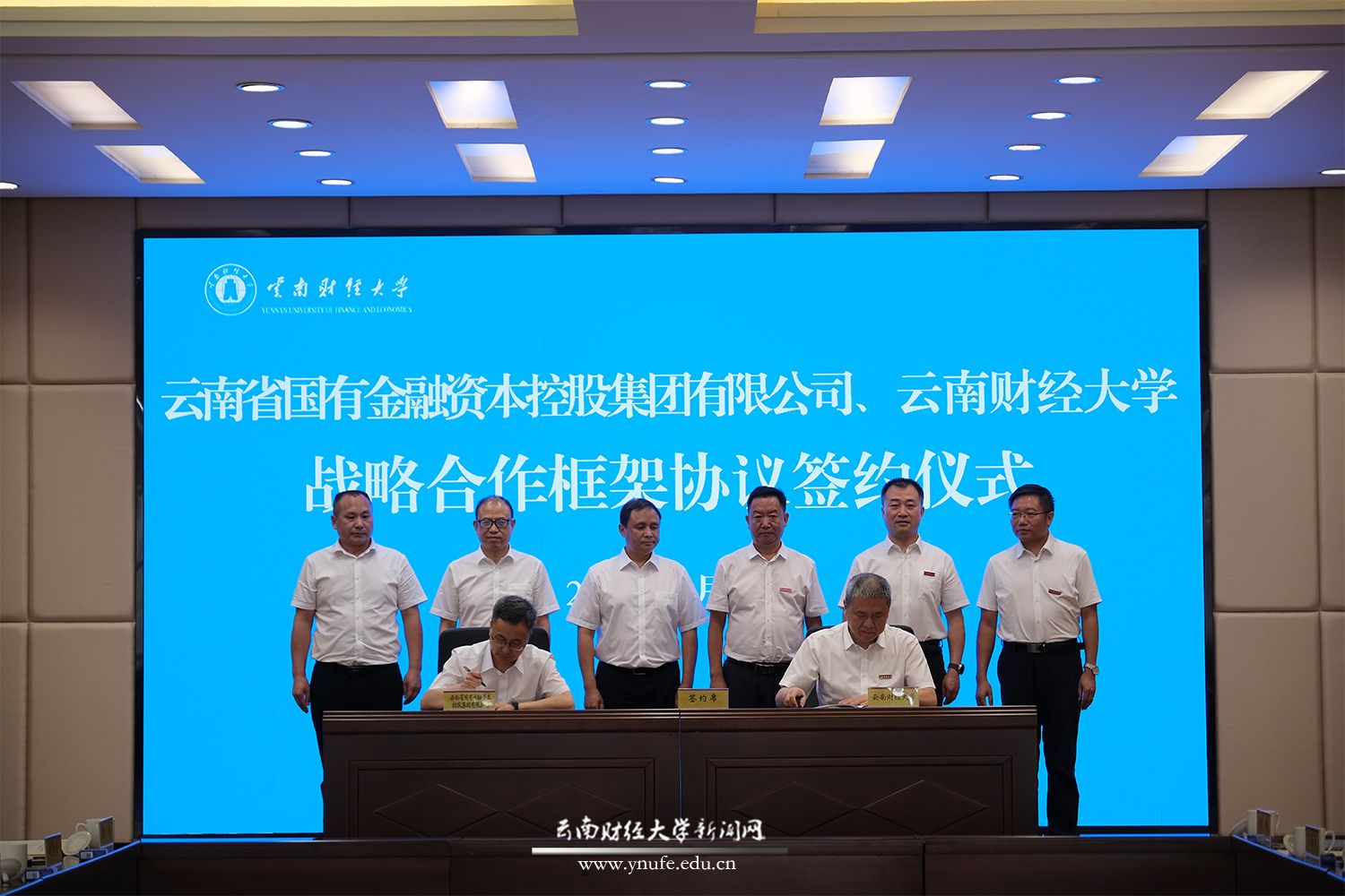 云南金控集团党委副书记、工会主席李根斌,党委委员、财务总监资云峰;学校党委副书记施仲军,纪委书记、监察专员业光远出席签约仪式。会议由党委委员、副校长余怒涛主持。