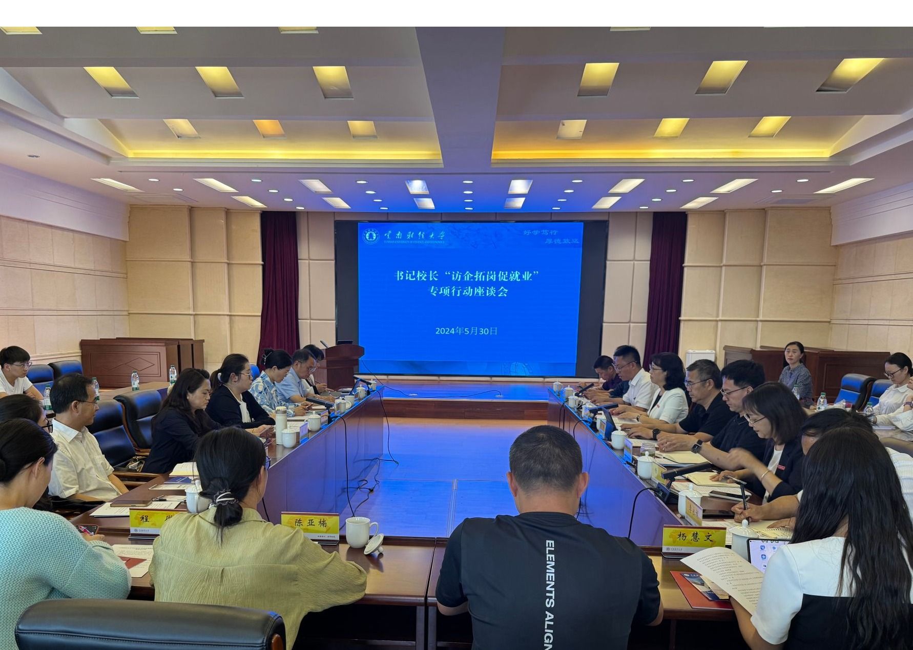 为深入贯彻落实“访企拓岗促就业”专项行动精神,进一步拓展校企合作和毕业生就业渠道,为毕业生提供更多就业岗位和机会,5月30日下午,校党委委员、副校长旷锦云与云南省资产评估协会、中国水利水电第十四工程局有限公司、北京亚超资产评估有限公司云南分公司、云南中联房地产土地资产评估有限公司、超星集团云南分公司、中德高路工程技术集团有限公司、云南京邦达物流科技有限公司等企业代表在致远楼415会议室举行书记校长“访企拓岗促就业专项行动”座谈会。会议由物流与管理工程学院党委书记宗锐主持。