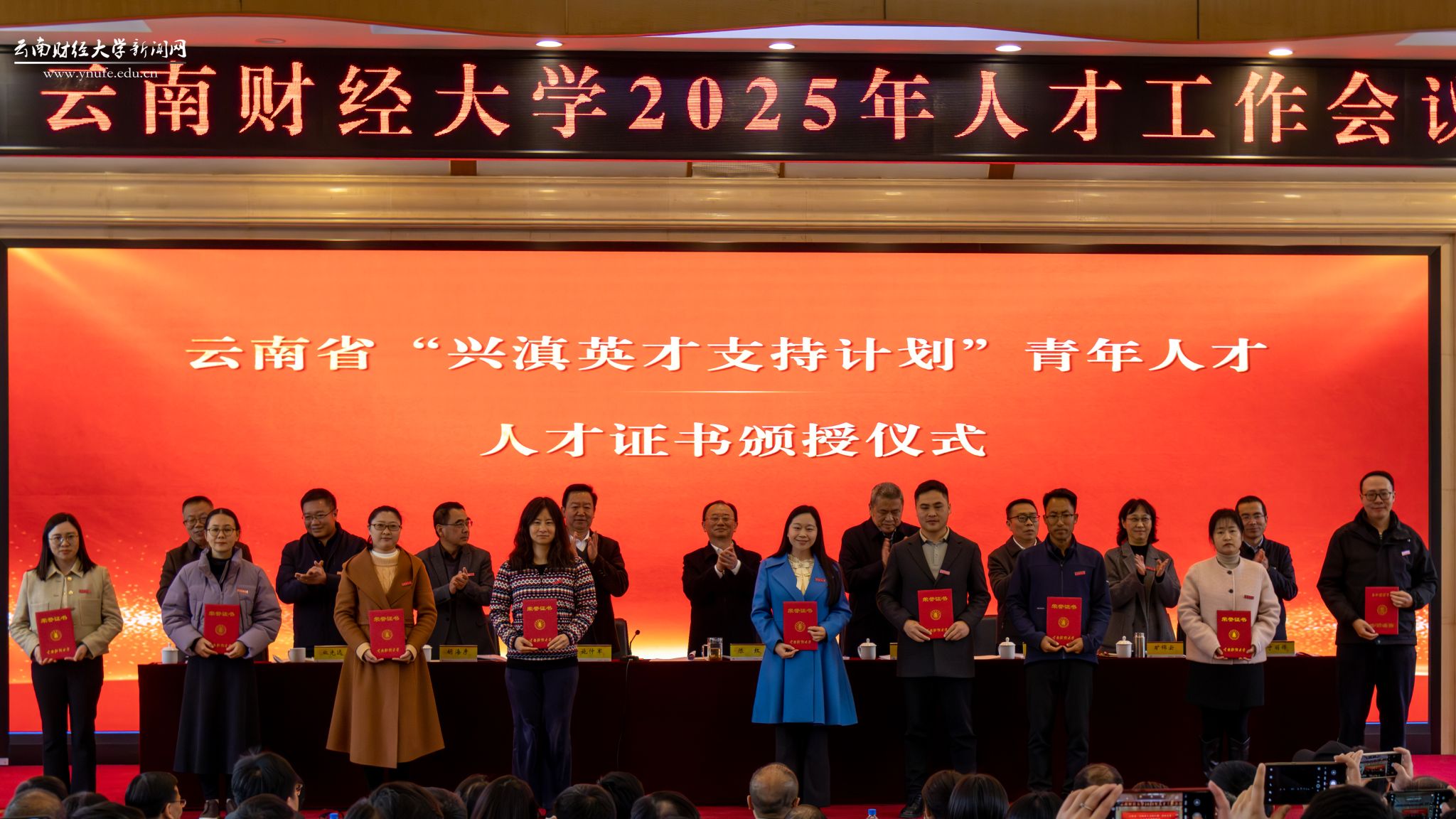 会上,为学校2023、2024年入选省级以上人才称号的人才颁授了证书。人才办(人事处)庞春平汇报了2024年度学校人才工作情况。姜茸、纳超洪教授作为入选云南省“兴滇英才支持计划”的人才代表分享了个人教学科研及人才培养等方面的成长经验。经济学院院长刘富华,统计与数学学院院长赵建华分享了2024年人才工作经验做法及2025年人才引培工作计划。