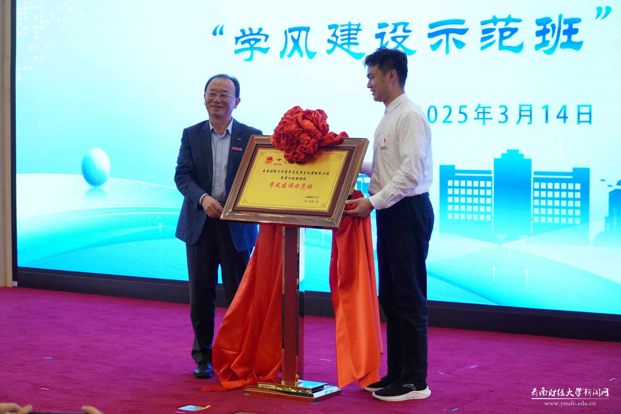 3月14日下午,WilliamHill官方网站青年马克思主义者培养工程•第十九期团校暨“学风建设示范班”开班仪式在龙泉路校区国际学术报告厅举行。学校党委书记陈红教授为云财青年开讲2025年春季学期“开学第一课”并为青马班首个“学风建设示范班”揭牌。