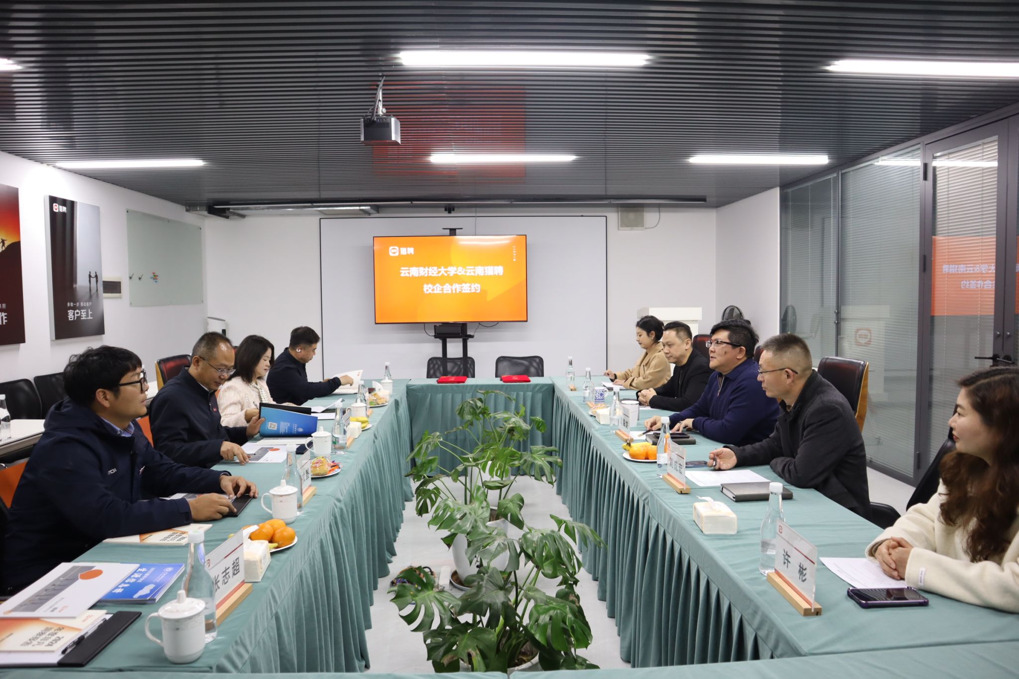 座谈交流环节,云南猎聘网络科技有限公司执行董事兼总经理谭海龙详细介绍了公司的基本情况,主要业务板块,强调了企业对高校合作的重视。霍嘉军从建校历程、办学层次、专业设置、2025届毕业生情况和用人单位评价等方面介绍了WilliamHill官方网站的基本情况,表示希望通过此次协议签署和授牌进一步加深与企业的交流合作,在人才培养、学生职业能力提升、毕业生实践就业等方面取得实质进展。王敏对商学院情况进行了介绍,就人力资源管理专业建设、产学研用等同企业交换了意见。