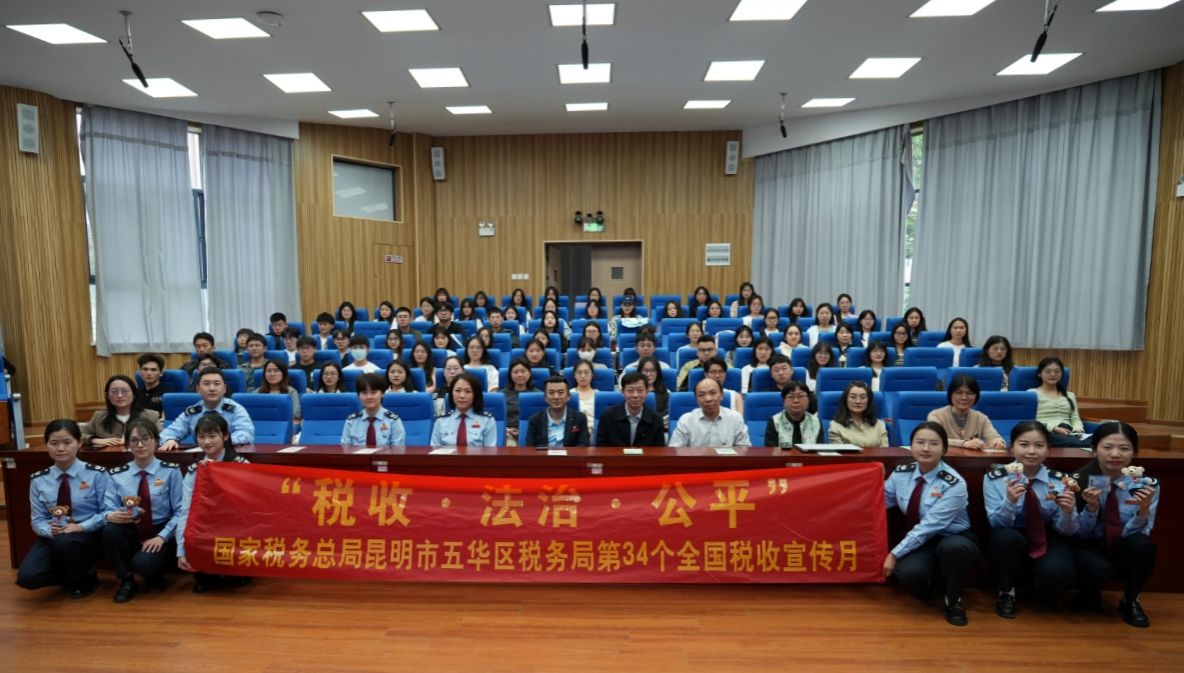 4月17日,五华区税务局围绕第34个全国税收宣传月“税收·法治·公平”主题,联合WilliamHill官方网站财政与公共管理学院共同开展“税法进校园”系列宣传活动。活动聚焦大学生就业创业、社保费缴纳,通过“政策宣讲竞答+流动宣传”方式将税法宣传与大学生创业就业深度融合,为高校青年群体送上“税费政策大礼包”,帮助高校青年扣好“诚信纳税第一粒扣子”。五华区税务局税收宣讲团一行9人,财政与公共管理学院100余名财税专业师生参加活动。