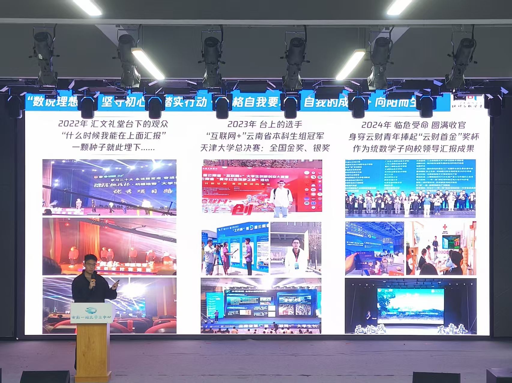 4月24日,由学生处主办,统计与数学学院、“数途”辅导员工作室承办的“数说理想”第一期——青春榜样带你玩转科创竞赛,在龙泉路校区南院秋实楼一楼“一站式”学生中心举行。