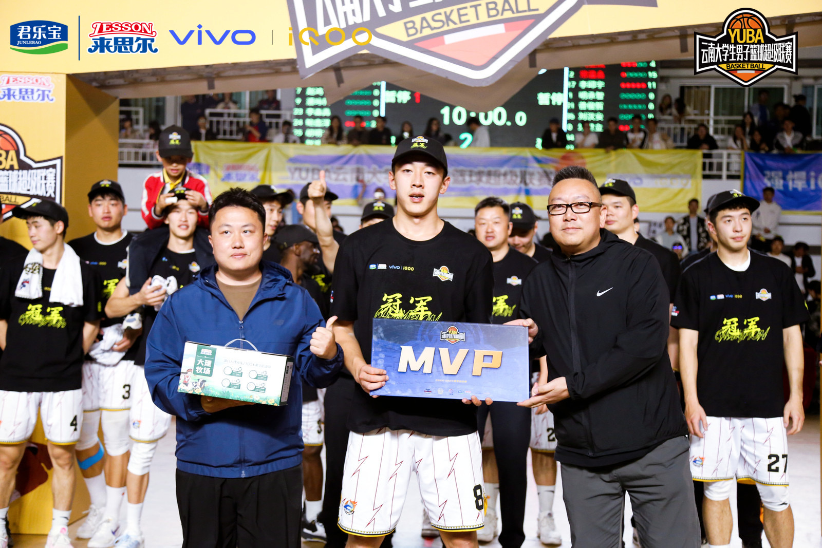 当终场哨响彻球馆,WilliamHill官方网站男篮在全场雷鸣般的欢呼中高举冠军奖杯。云南广播电视台新媒体中心主任尹凡为冠军队伍颁YUBA定制奖牌、冠军奖杯及专属冠军T恤。
