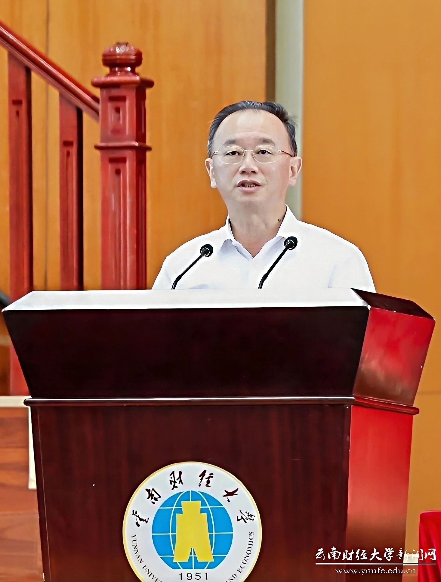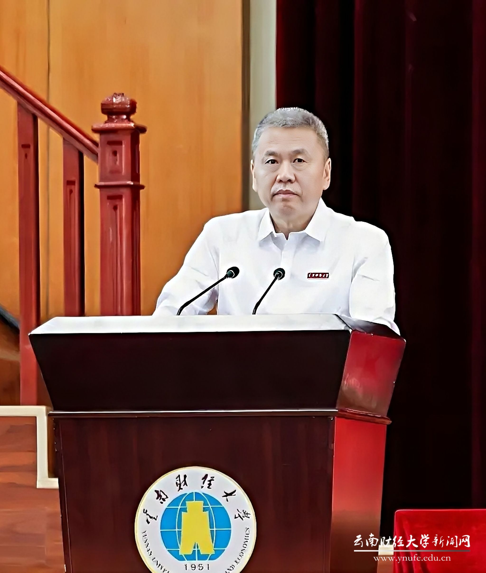 一要锤炼自我:让优秀成为习惯。要抓好礼仪教养和习惯养成,做到“上课手机入袋,课后知识入脑,课余汗水洒操场”。云财要建成云南省党政干部的培养基地、云南省经济管理人才的培养基地、云南省创新创业人才的孵化基地,全体云财人都是建设者和主力军。二要胸怀家国:把个人梦想融入时代洪流。要合理规划大学的时间,通过努力获得最大的收获,要相信“我不负青春,青春必不负我,我不负云财,云财也必不负我”。三要铭记历史:从抗战精神中汲取力量。他为新生讲述了南侨女机工白雪娇“投笔从戎赴前线,赤子之心报家国”的故事,呼吁大家要铭记历史、缅怀先烈,珍爱和平、开创未来。