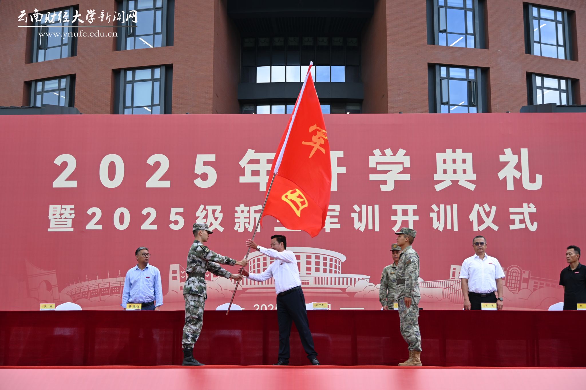 施仲军向军训团授旗并作动员讲话。他表示,今年是中国人民抗日战争暨世界反法西斯战争胜利80周年,在这个具有特殊历史意义的时刻开展军训,可谓正当其时、意义非凡。他要求全体参训同学要培养爱国情怀、树立远大理想,要磨炼意志品质、勇于面对困难,要增强团队意识、培养协作精神,要强化纪律观念、严格要求自己,以饱满的热情、昂扬的斗志投入到军训中去,高质量完成训练任务。希望全体承训教官高标准、严要求,把人民军队的光荣传统和优良作风带给同学们,为今后的学习生活和工作打下坚实基础。各学院带队教师和军训团工作人员要强化意识、坚守岗位,配合教官做好学生日常管理、思想引领、服务保障等工作,确保军训圆满完成。