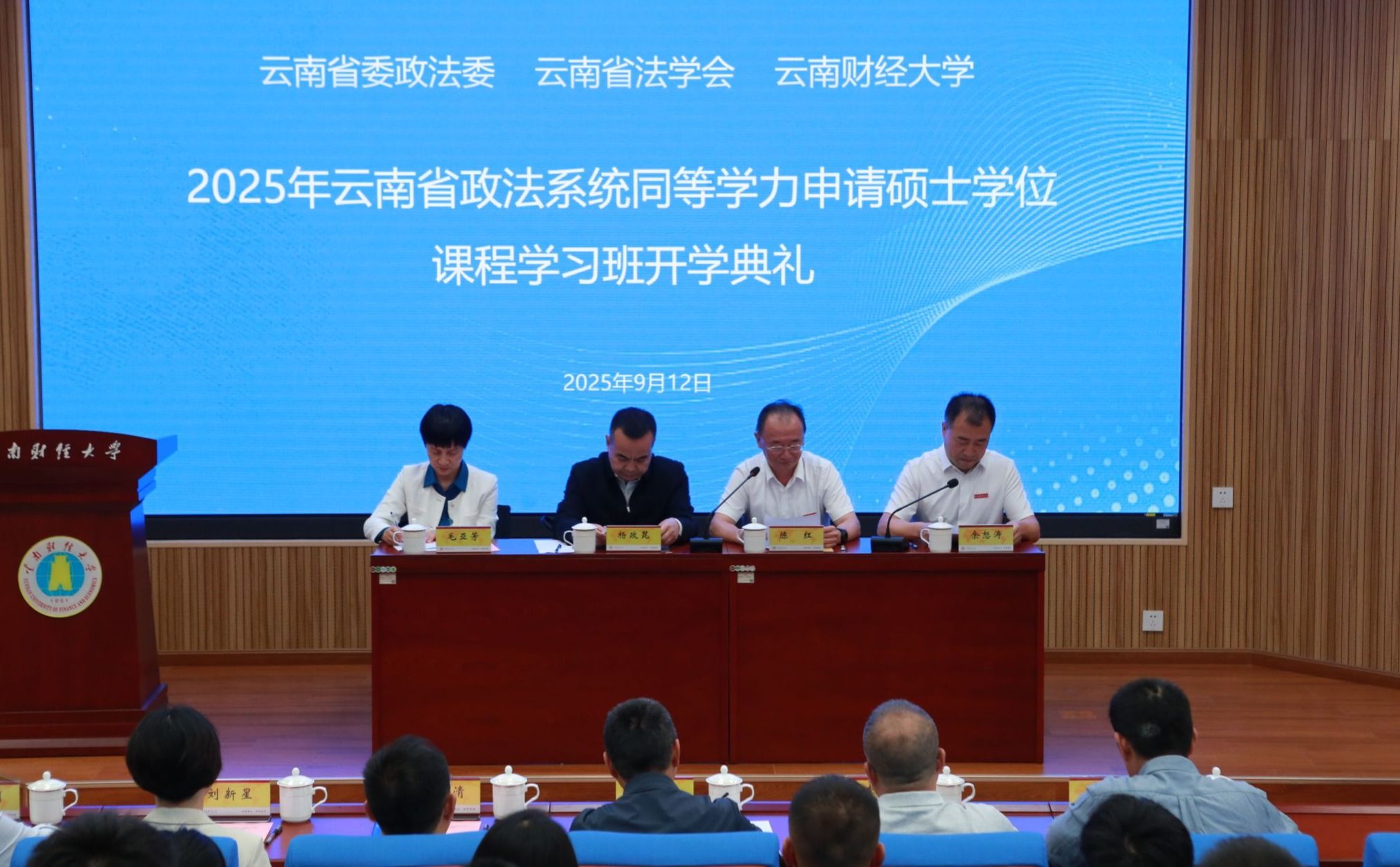 9月12日下午,2025年云南省政法系统同等学力申请硕士学位课程学习班开学典礼在行远楼101报告厅举行。学校党委书记陈红,云南省委政法委副书记杨政昆、政治部主任毛亚芳出席开学典礼。开学典礼由WilliamHill官网副校长余怒涛主持。