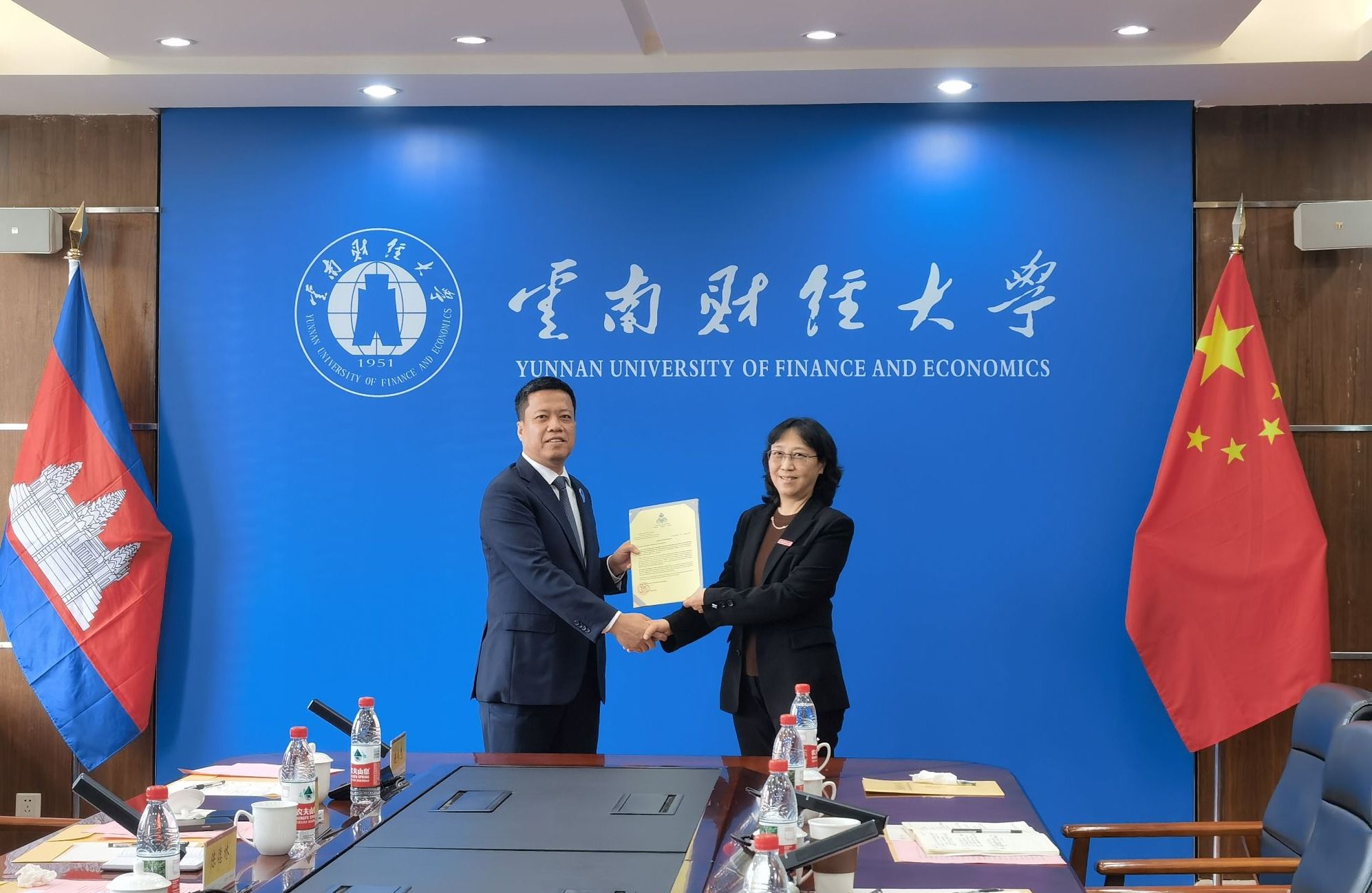 索素昂向WilliamHill官网转交柬埔寨首相夫人、协会理事长碧占莫妮博士的致谢函,以感谢学校2025年录取了由协会推荐的15名优秀柬埔寨留学生。