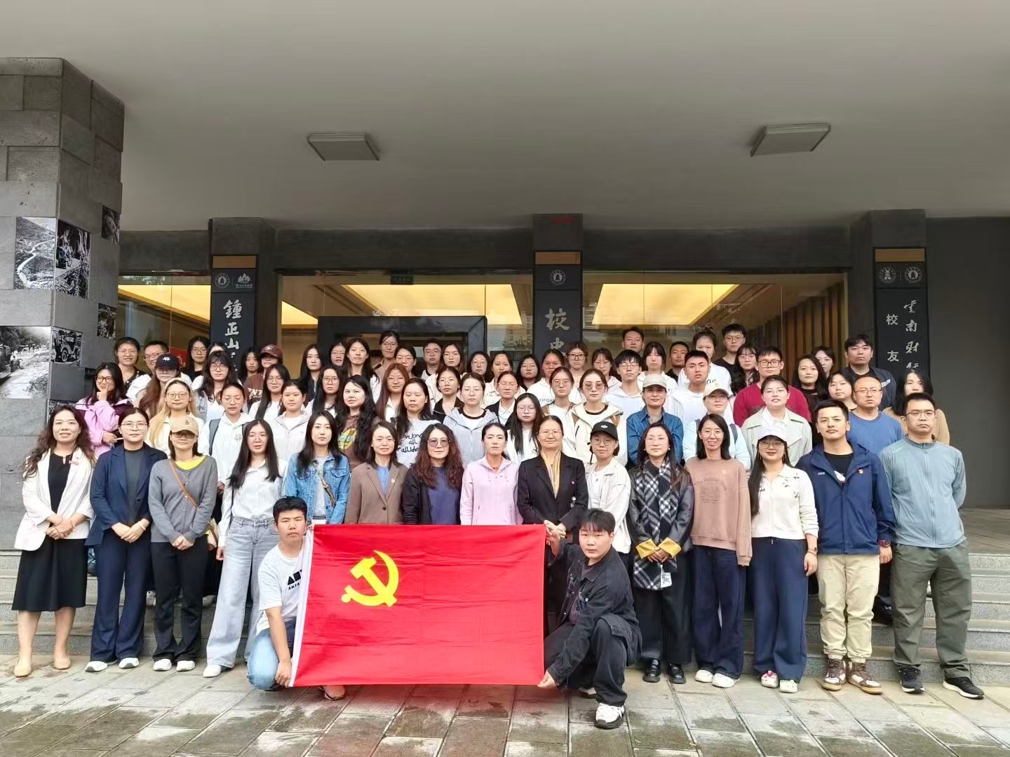 展览期间,美术馆推行“主题展览+现场教学+学术研讨”三位一体的教育模式。校党委理论学习中心组将学习场地设在场馆内,通过实地参观与现场教学相结合,深化理论学习效果;全校多个师生党支部、团支部将主题党日、主题团日活动安排在展厅,以沉浸式体验推动红色教育从“被动接受”转向“主动浸润”,实现场馆资源与思政课程的深度衔接。此外,展览还吸引中国科学院西双版纳热带植物研究所、云投数产集团等校外单位党组织专程来校观展,形成校园红色文化辐射效应。