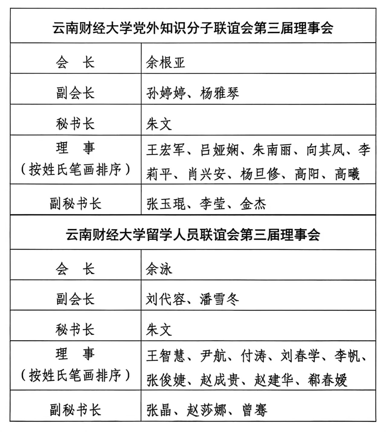大会结束后,学校党外知识分子联谊会、留学人员联谊会第三届理事会召开第一次会议,选举产生了新一届理事会会长、副会长、秘书长,选聘副秘书长。