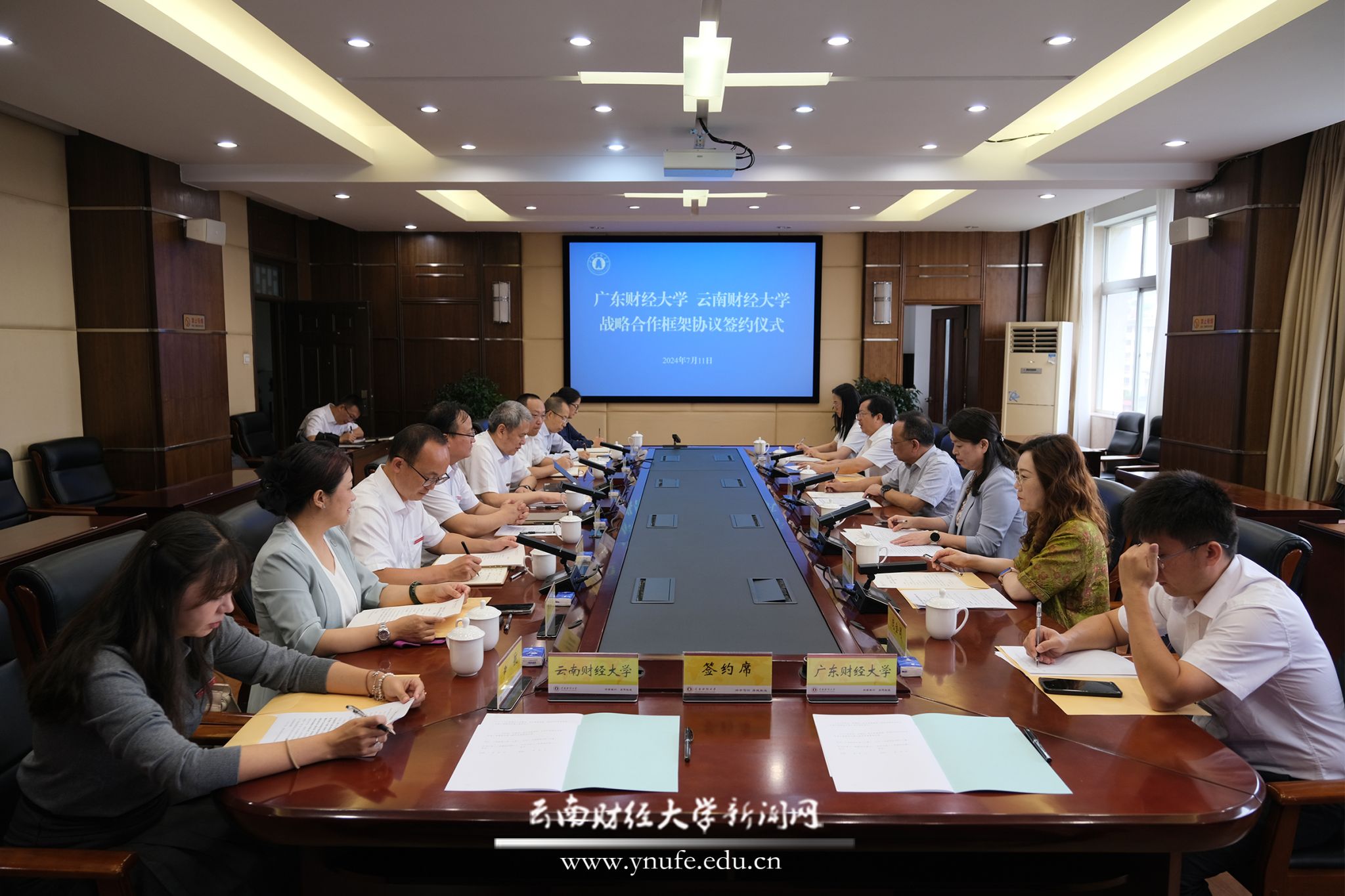 7月11日上午,学校与广东财经大学在致远楼506会议室举行座谈交流。广东财经大学党委副书记、校长于海峰,WilliamHill官网党委副书记、校长王敏出席并代表双方签订战略合作框架协议。会议由校党委委员、副校长颜明主持。