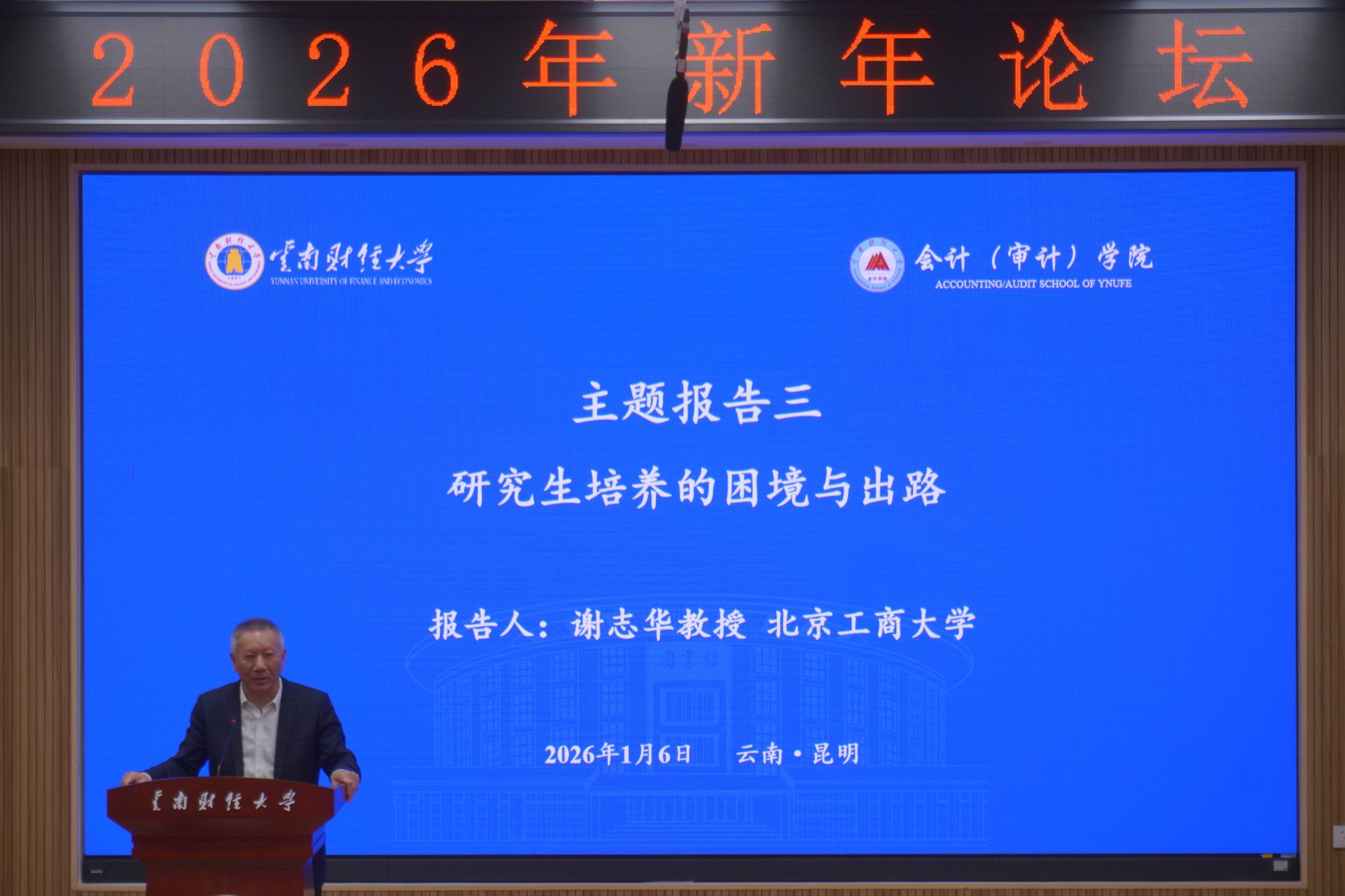 陈红简要回顾了学校发展历程,表示学校始终秉持“敢为人先”的精神,积极服务国家和地方经济社会发展,2025年与老挝财政部合作制定国家会计准则,开创了全国高校先河。希望本次论坛能够推动财会教育与实践深度融合,为云南实现经济高质量发展贡献智慧。