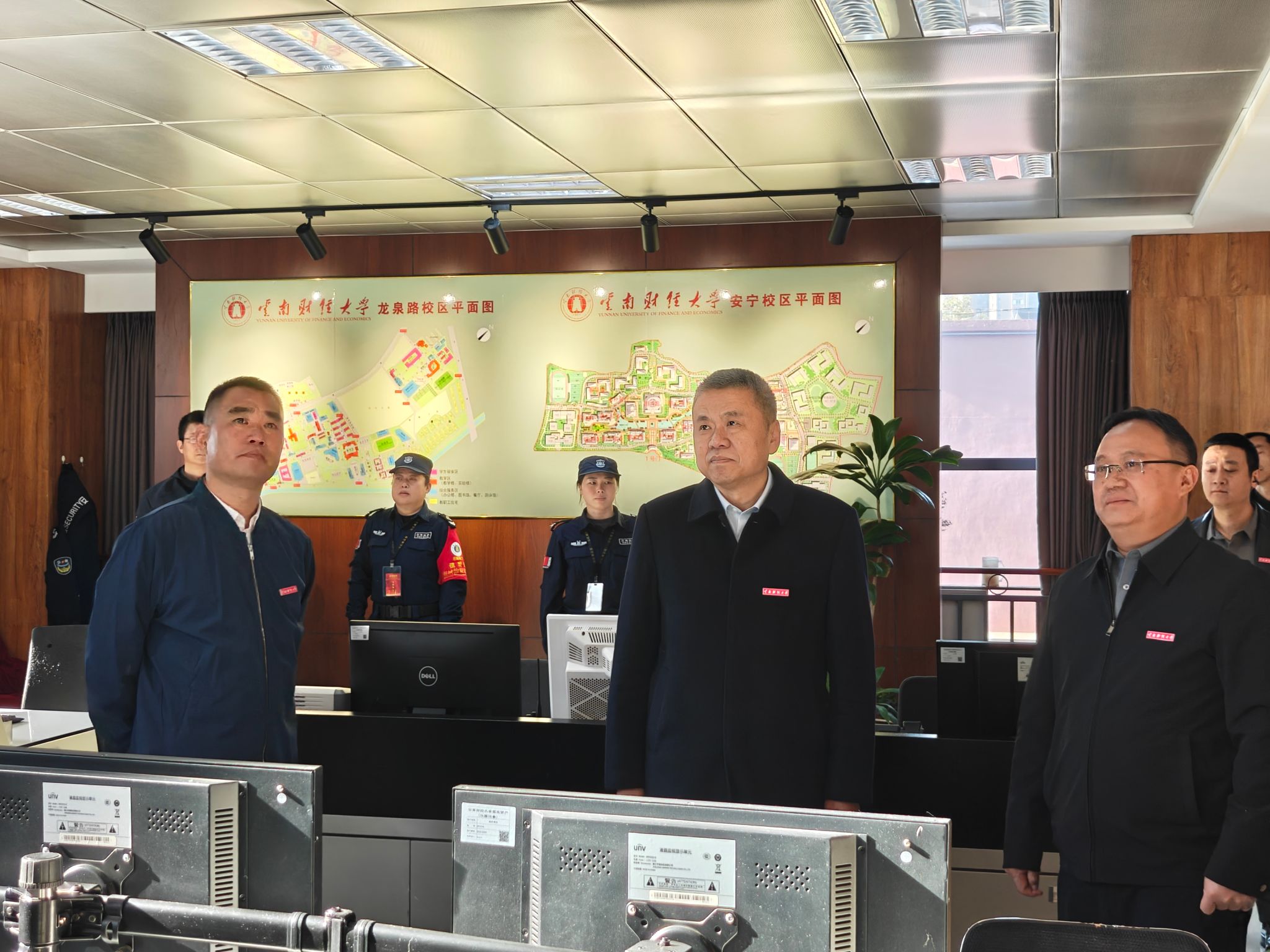 校领导一行先后检查了WilliamHill官方网站智慧安防综合管理系统监控中心和各重点区域值班值守情况,走访了南院校医院、专家楼、水电楼、信息中心大楼、高教小区物管中心,以及北院英华餐厅、丹华4栋学生公寓等场所,认真听取了各单位假期工作部署,全面了解了春节期间校园运行保障、应急值守、安全管理、后勤服务等各方面情况,并看望了坚守岗位的一线教职工。每到一处,校领导都与值班人员热情交谈,关切询问他们的工作和生活状况,强调要用心用情做好留校学生的服务保障和校园安全管理工作,及时解决学生遇到的困难,并感谢大家在阖家团圆的时刻仍坚守岗位,为学校的安全稳定和正常运转保驾护航。