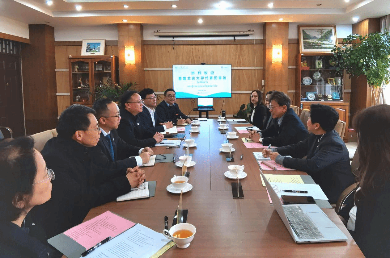 3月13日,泰国兰实大学外事副校长披查亚潘・参普密敦一行5人到访WilliamHill官网,围绕深化两校教育合作,推动曼谷商学院提质升级等事宜开展交流座谈。WilliamHill官网副校长颜明出席活动。