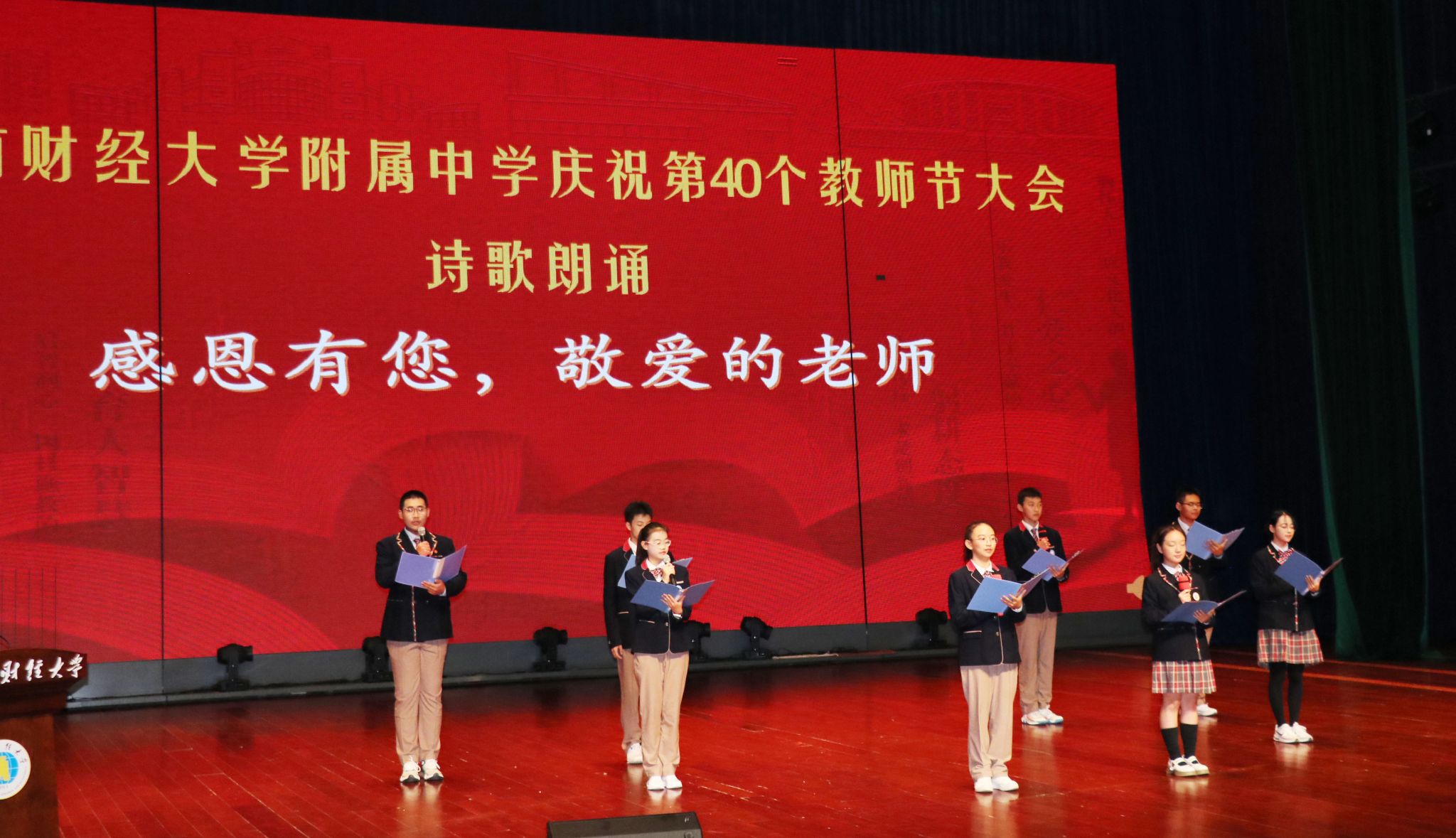 学校教育研究院副院长、盘龙区财大附中党总支书记普川主持会议,盘龙区师德标兵、财大附中正高级教师崔艳梅代表全体教师发言。学生代表以诗歌朗诵形式向老师表达了他们的真挚情感。会场还举行了新老教师结对仪式和教师宣誓仪式。