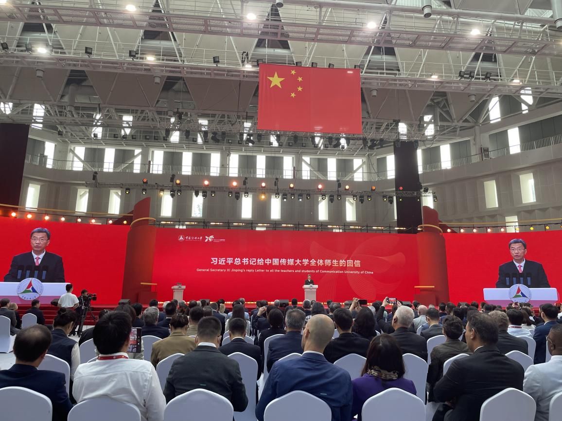 9月26日,王敏出席中国传媒大学建校70周年庆典大会。会议伊始,教育部党组书记、部长怀进鹏宣读习近平总书记的重要回信,中外校长和嘉宾们一同现场学习领会习近平总书记的重要回信精神。