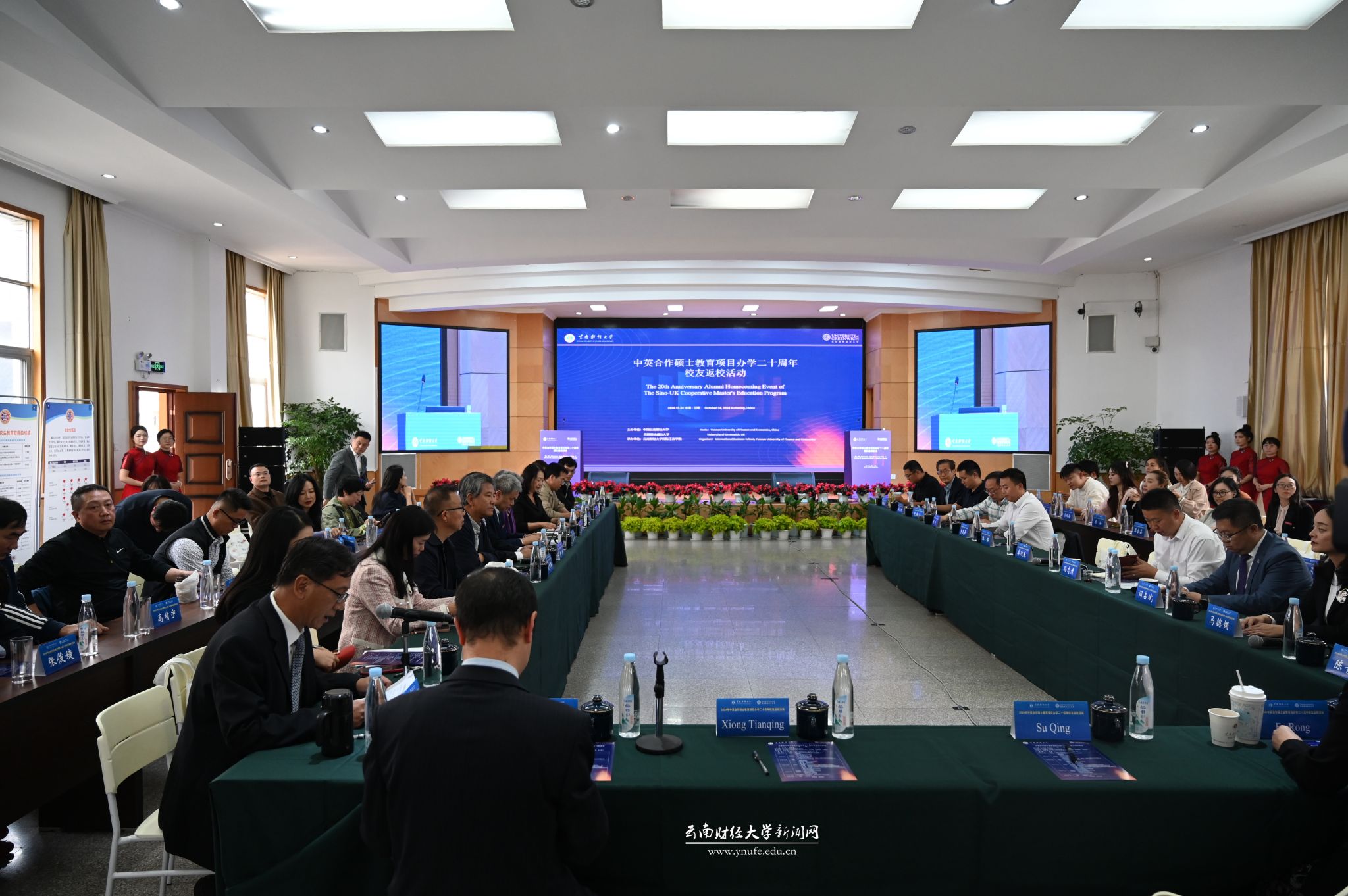 王敏致开幕词,对参加活动的嘉宾和校友以及二十年来参与此项目建设的中英各界人士表达了欢迎和感谢。他回顾了项目建设和人才培养的情况,认为项目始终坚持高质量的教学标准,不断优化课程设置、引进优秀师资,培养的学生在学术和实践方面都取得了优异的成绩。“校友们,你们是学校最宝贵的财富。你们在各自的岗位上积极贡献,用自己的实际行动诠释着‘自强不息,敢为人先’的云财精神。你们的成就不仅为自己赢得了荣誉,也为学校增添了光彩。”