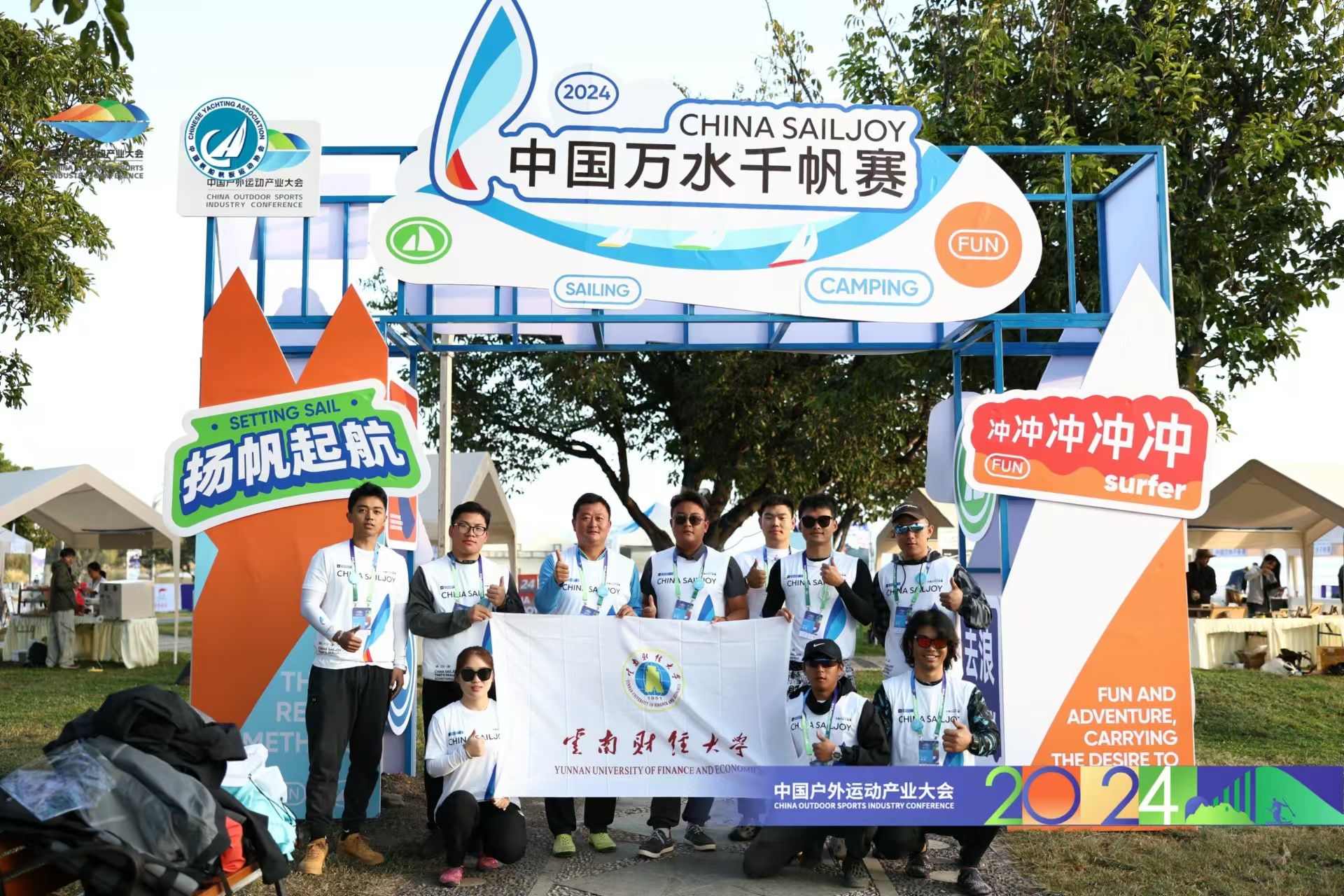 大会期间,胡海彦看望了参加2024中国户外运动产业大会·中国万水千帆赛(大理站)的WilliamHill官网帆船队队员,鼓励他们大力弘扬体育精神,充分展示云财学子的良好风貌。