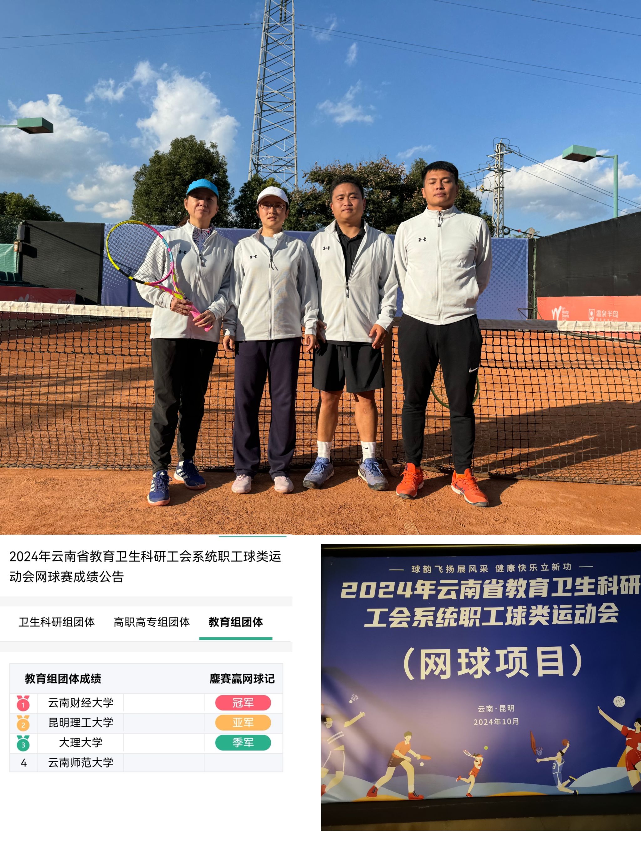 11月4日,云南省教卫科工会系统职工球类运动会在昆明冶金高等专科学校落下帷幕。WilliamHill官网代表队在此次比赛中表现优异,网球队荣获混合团体赛冠军,男、女气排球队荣获季军。