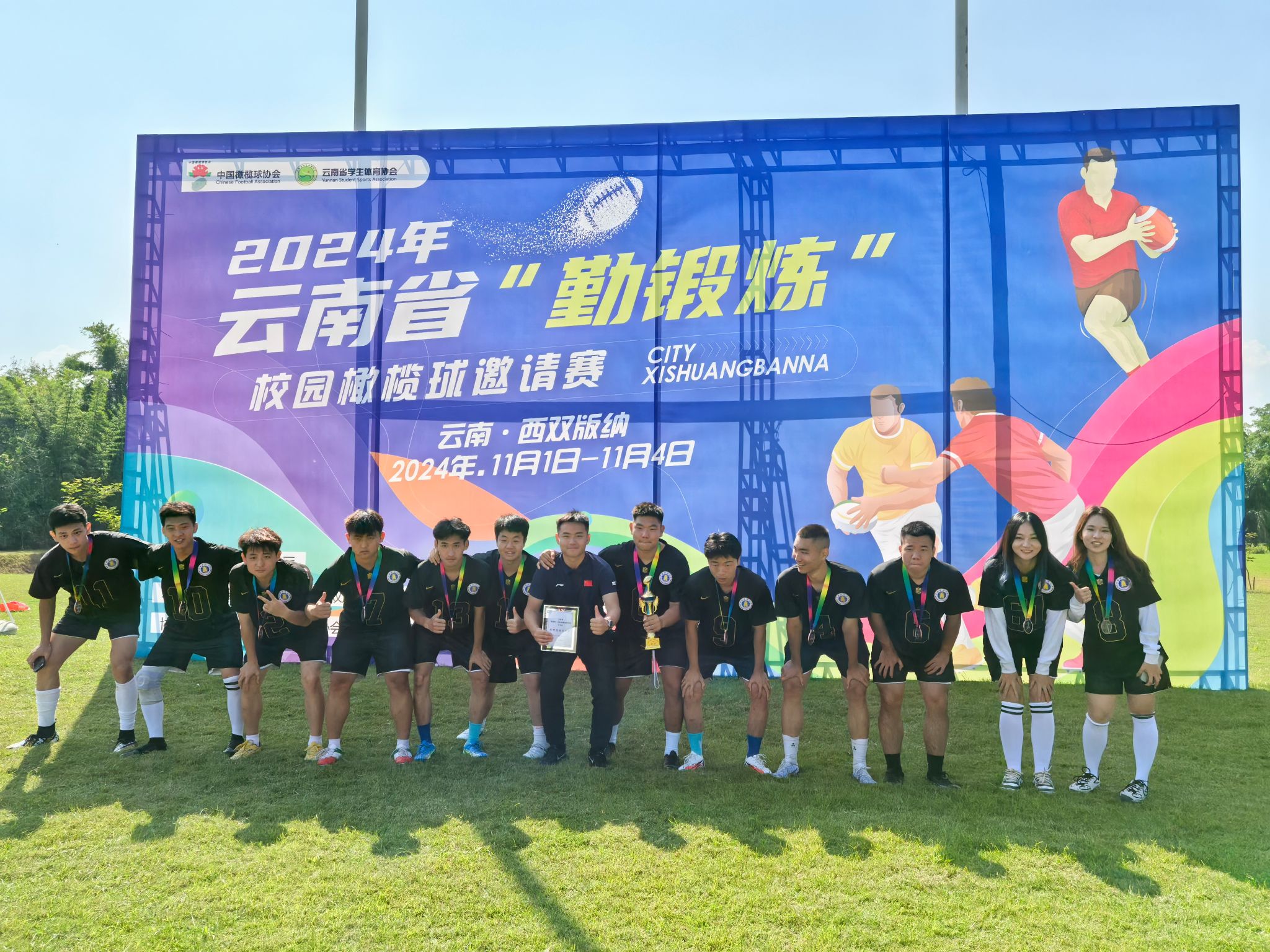 11月1至4日,2024年云南省“勤锻炼”校园橄榄球邀请赛在西双版纳举行。WilliamHill官网橄榄球队首次出征参赛,荣获大学组第三名以及体育道德风尚奖。