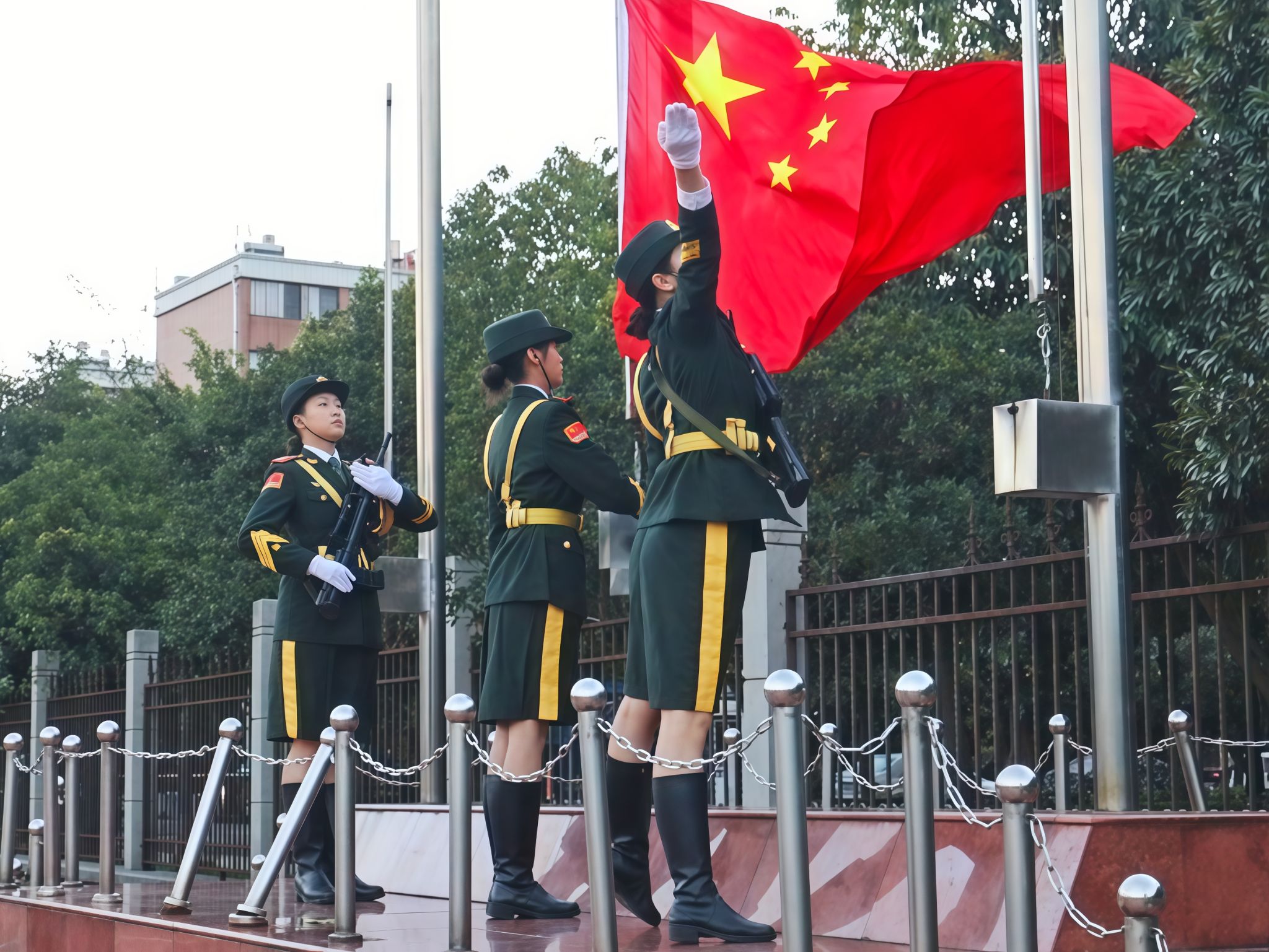 每周一的清晨,鲜艳的五星红旗伴随着旭日东升在校园升起,已经成为学校常态化开展的一项爱国主义教育和国防教育。升旗仪式的开展,不仅是一次庄严、生动的思想政治教育实践,也成为学生优良学风教育的重要形式和载体。学校武装部将持续开展每周一的升国旗仪式,积极践行和落实“进教室、进图书馆、进运动场、出宿舍”的倡议,引导广大云财学子立报国强国大志向,做挺膺担当奋斗者。