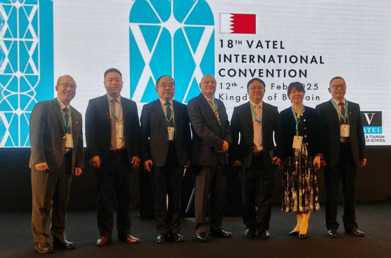 2月12日至16日,校党委委员、副校长颜明和旅游与酒店管理学院副院长王智慧一行应邀赴巴林参加瓦岱勒集团第18届年会。瓦岱勒集团新任主席Karine Sebban-Benzazon,BTEA巴林旅游和展览管理局首席执行官Sara Ahmed Buhiji,法国驻巴林大使Eric Giraud-Telme及瓦岱勒全球50个校区负责人等100余名代表参加会议。