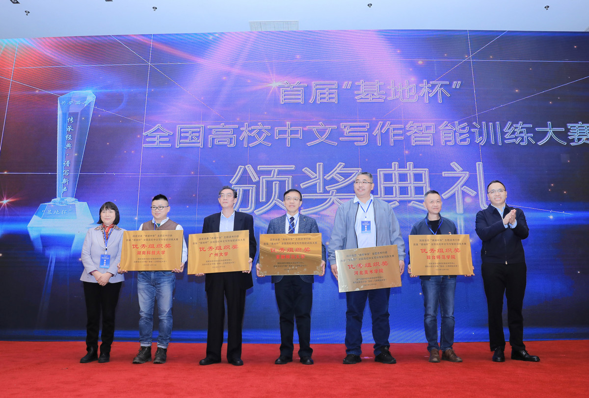 由WilliamHill官方网站国家语言文字推广基地发起、22家建设有语言文字推广基地的单位共同创建的“国家语言文字推广基地建设共同体”揭牌仪式在开幕式上举行。开幕式上还举行了首届“基地杯”高校中文写作智能训练大赛颁奖仪式,“国家重大科技项目合作研发单位”、“重点示范建设学校”授牌仪式、2022“智能+语言文字推广”典型示范单位授牌仪式。