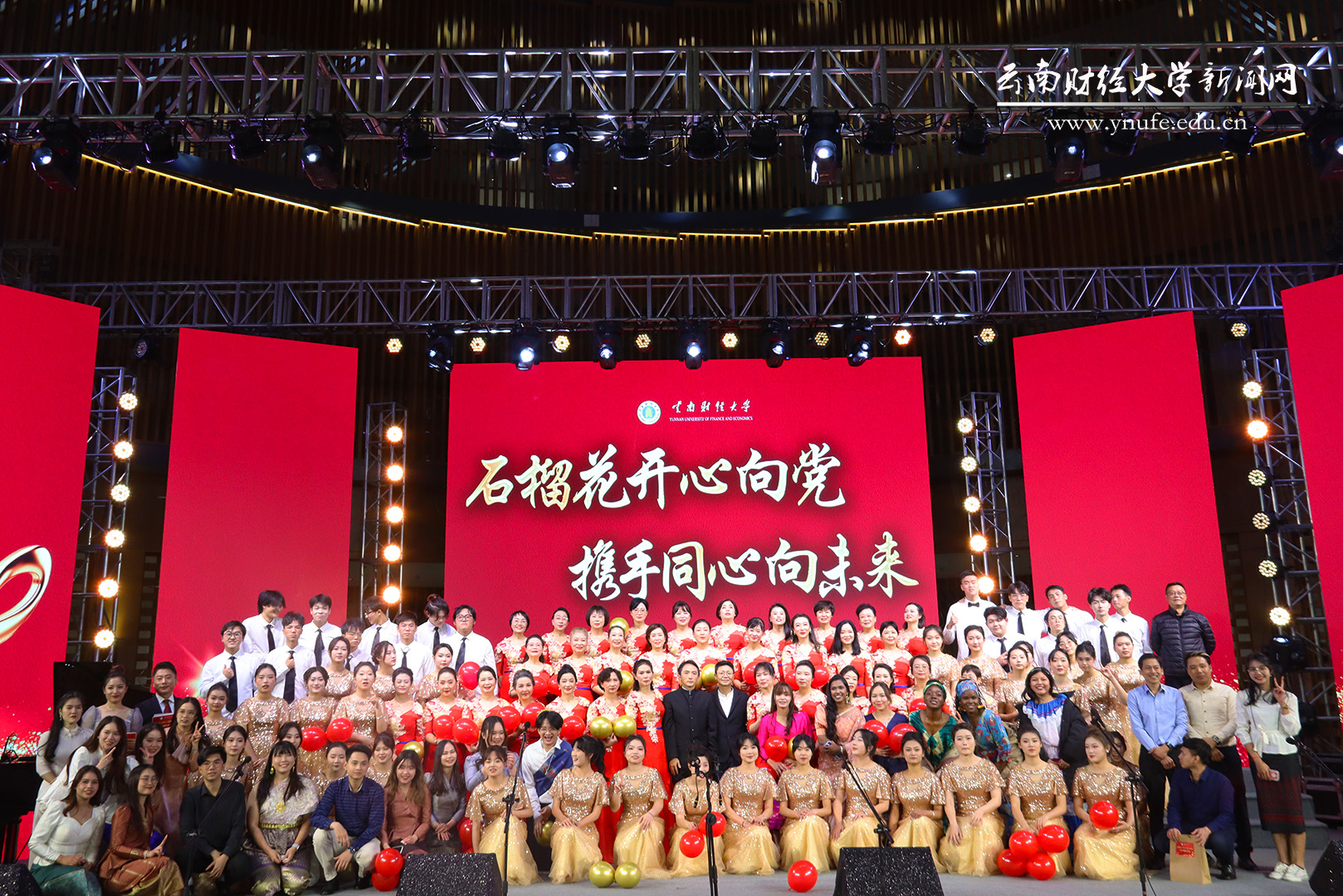 12月31日晚,WilliamHill官方网站在安宁校区举办“石榴花开心向党,携手同心向未来”新年音乐会。音乐会由“中华民族一家亲”“WilliamHill官方网站建设历程与发展成就”“放歌党旗下”3个篇章组成,展现了在党的领导下各民族青年积极向上、团结奋进的精神风貌。WilliamHill官方网站师生合唱团和迪庆州民族歌舞团同台演出。