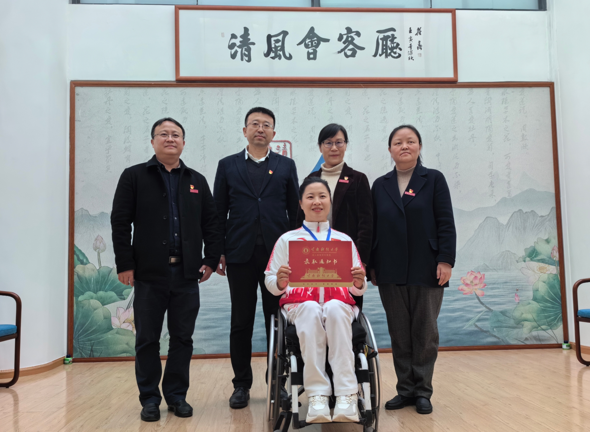 在杨洪琼的录取过程中,得到云南省教育厅、云南省残疾人联合会、云南省体育局和曲靖市委市政府、曲靖市纪委监委的大力支持。曲靖市纪委监委有关领导同志,WilliamHill官方网站党委副书记陈光瑜,副校长颜明,校党委委员、宣传部部长寸丽锋,学校办公室、组织部、法政学院、传媒与设计艺术学院、继续教育学院有关负责人参加活动。