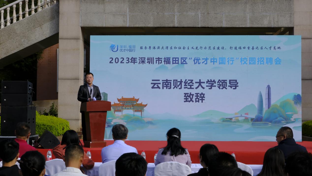 为助力毕业生更加充分、更高质量就业,10月17日,深圳市福田区“优才中国行”昆明站启动仪式暨专场招聘会在学校龙泉路校区南院博源广场举办,学校党委委员、副校长余怒涛致辞,深圳市福田区人力资源局副局长王巍带领项目组一行参加启动仪式。