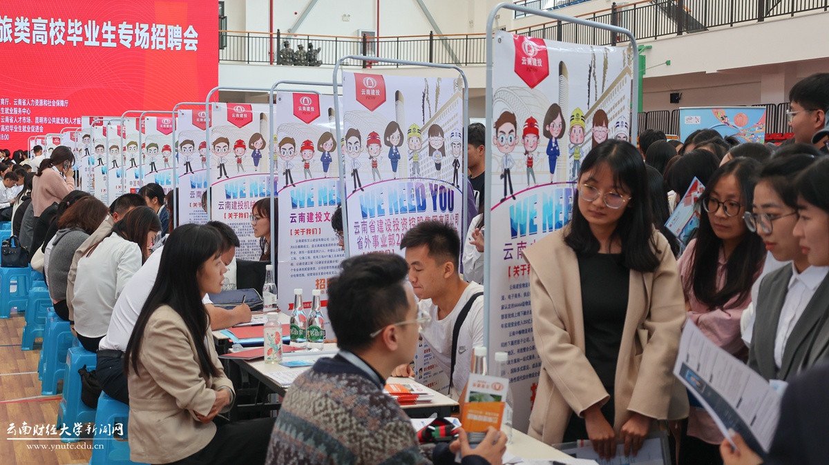 此次招聘会吸引了中信银行股份有限公司昆明分行、云南省水利水电投资有限公司、云南省铁路集团有限公司,云南省建设投资控股集团有限公司下属26家子公司等135家企事业单位入驻参会,涵盖财经、金融、保险、旅游等多个行业领域,涉及会计、工商管理、保险、金融、市场营销、酒店管理、公共管理、旅游管理等多个专业,为毕业生提供有效就业岗位552个,招聘需求人数3173个。学校2024届5000余名毕业生,云南师范大学、云南警官学院、云南经济管理学院等高校部分毕业生到现场参加双选招聘会。毕业生积极主动与用人单位沟通交流,详细询问企业情况、岗位需求、薪资待遇等相关信息,招聘会现场秩序井然。