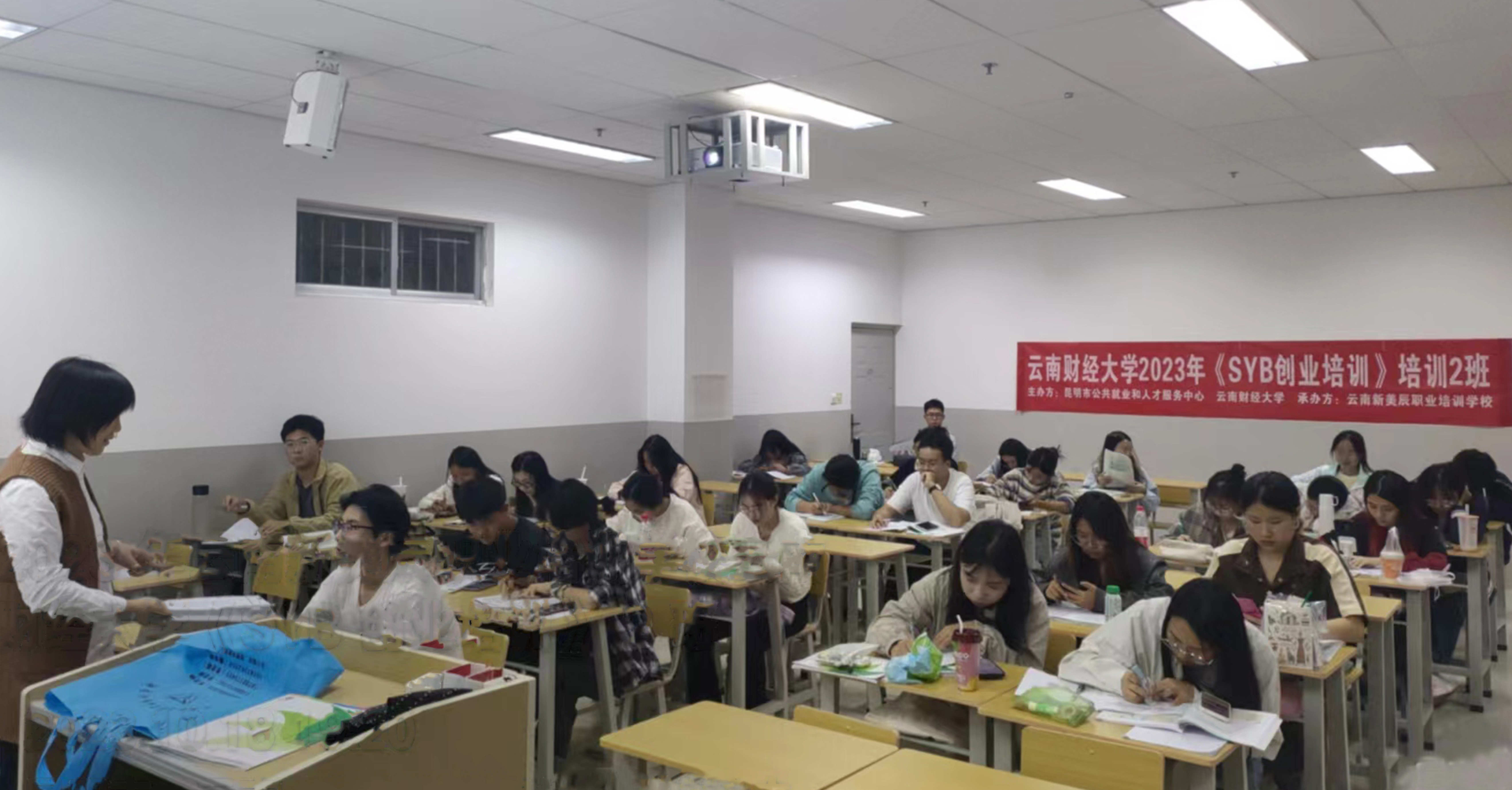 10月13日—10月22日,学校和昆明市劳动就业服务局联合举行2023年大学生创新创业培训,开展了大学生网络创业和SYB创业培训,此次培训分别在龙泉路校区和安宁校区举行,共开设4个培训班,培训人数总计120人,其中114名学生考试合格顺利结业。