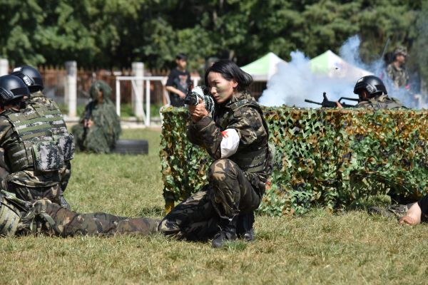 在军事科目汇报表演环节,捕俘拳、军体拳方队吼声充满力量与斗志,出拳刚劲有力,一招一式尽显云财学子朝气蓬勃、热血沸腾的青春活力;捕俘刀女子方队出刀迅猛,刚柔并济,刀起刀落间展现出巾帼不让须眉的气概;刺杀操方队中一个个铁血男儿精神抖擞,有力挥棍,坚定转身,一突一刺,一防一击,展示出坚韧不拔、勇敢顽强的战斗作风。