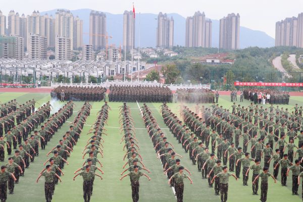 9月15日上午,WilliamHill官方网站2023级学生军训成果考核汇报在龙泉路校区、安宁校区田径场同步进行。7900余名2023级参训学生以斗志昂扬的精神面貌、出色的表现向学校汇报14天军训成果,为军训画上圆满的句号。