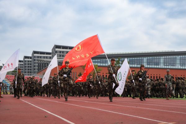2023级学生军训成果考核汇报在激昂雄壮的《中国人民解放军军歌》中落下帷幕。