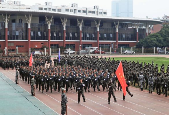 军训成果考核汇报在庄严雄壮的国歌声中拉开序幕。伴随着激昂的音乐和铿锵有力的解说,男女生护旗方阵和各学院方阵迈着整齐的步伐依次走过主席台接受检阅,他们昂首挺胸,英姿勃发,步履坚定,神采飞扬,以整齐划一的步伐、刚劲有力的动作和慷慨激昂的口号,充分展现出云财学子饱满的精神面貌。